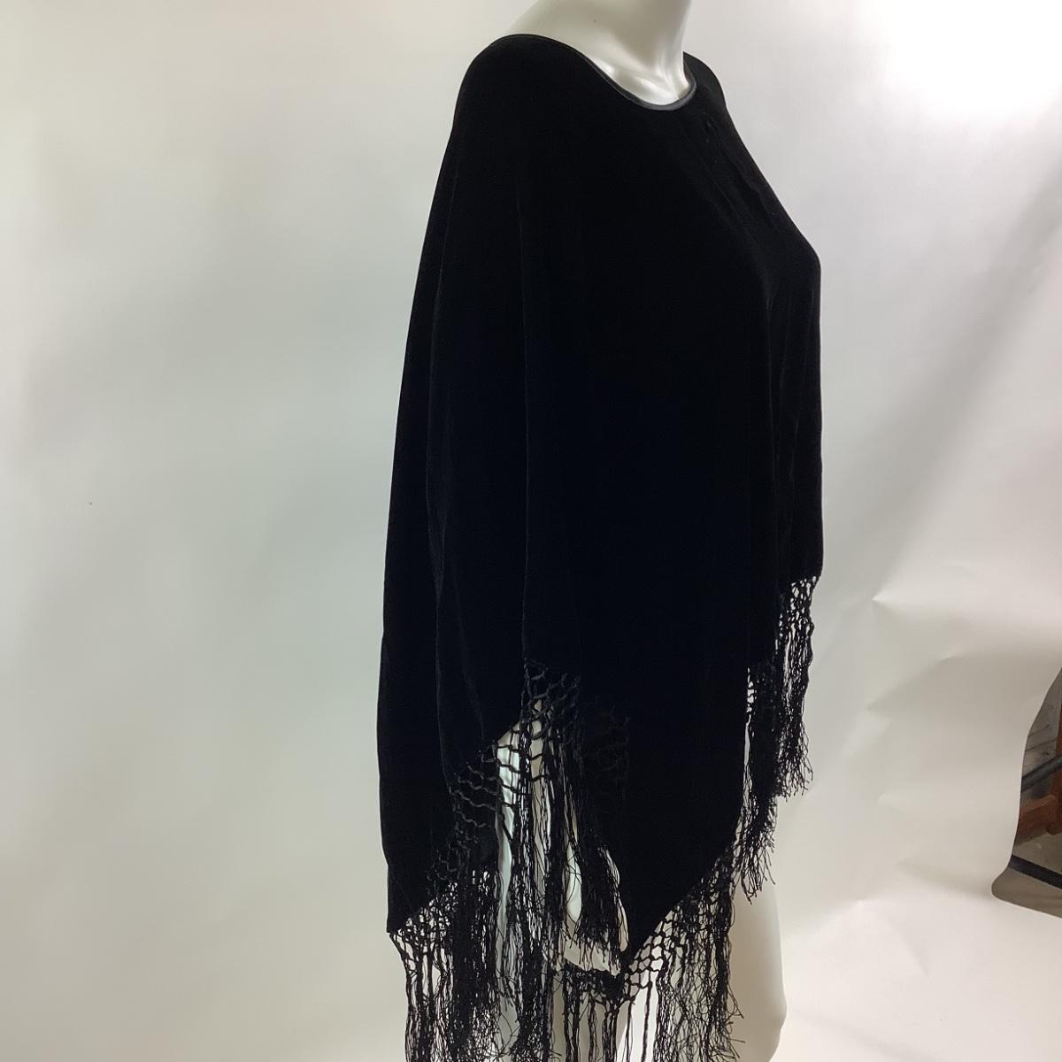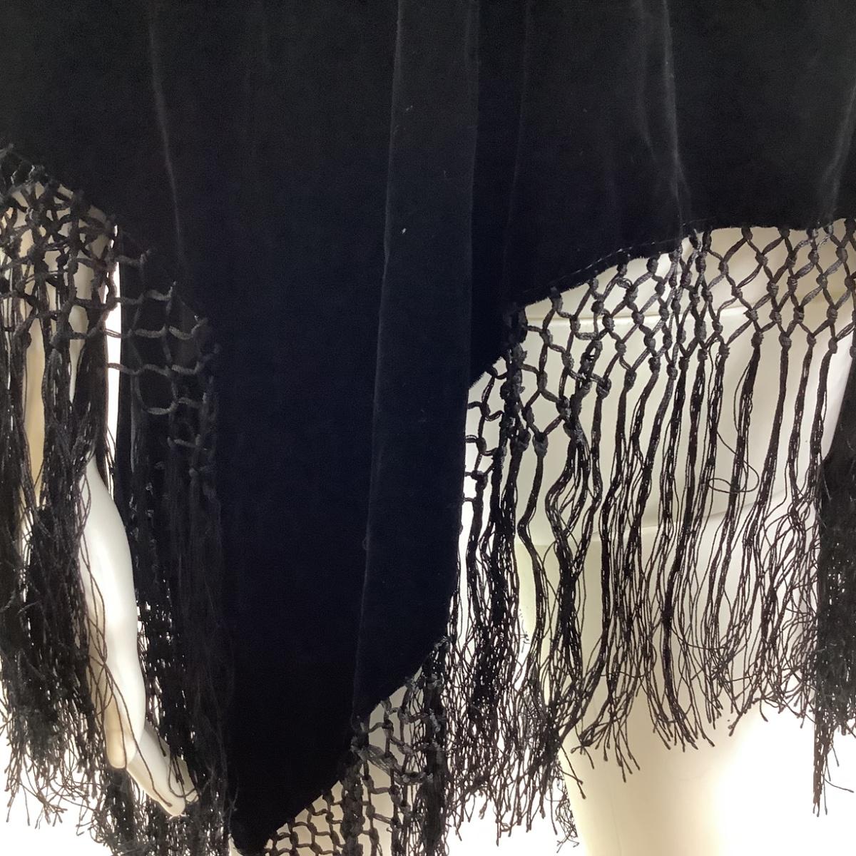 Lot 581 Vintage Black Velvet Shawl with Fringe