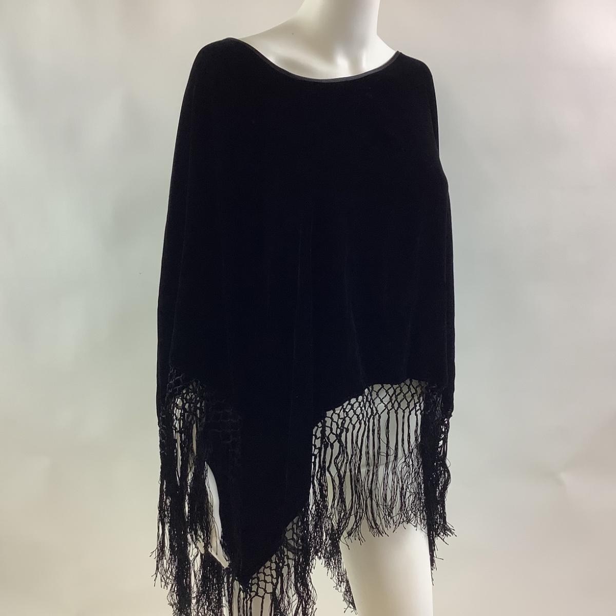 Vintage Black Velvet Shawl/Top with fringe, one size fits all