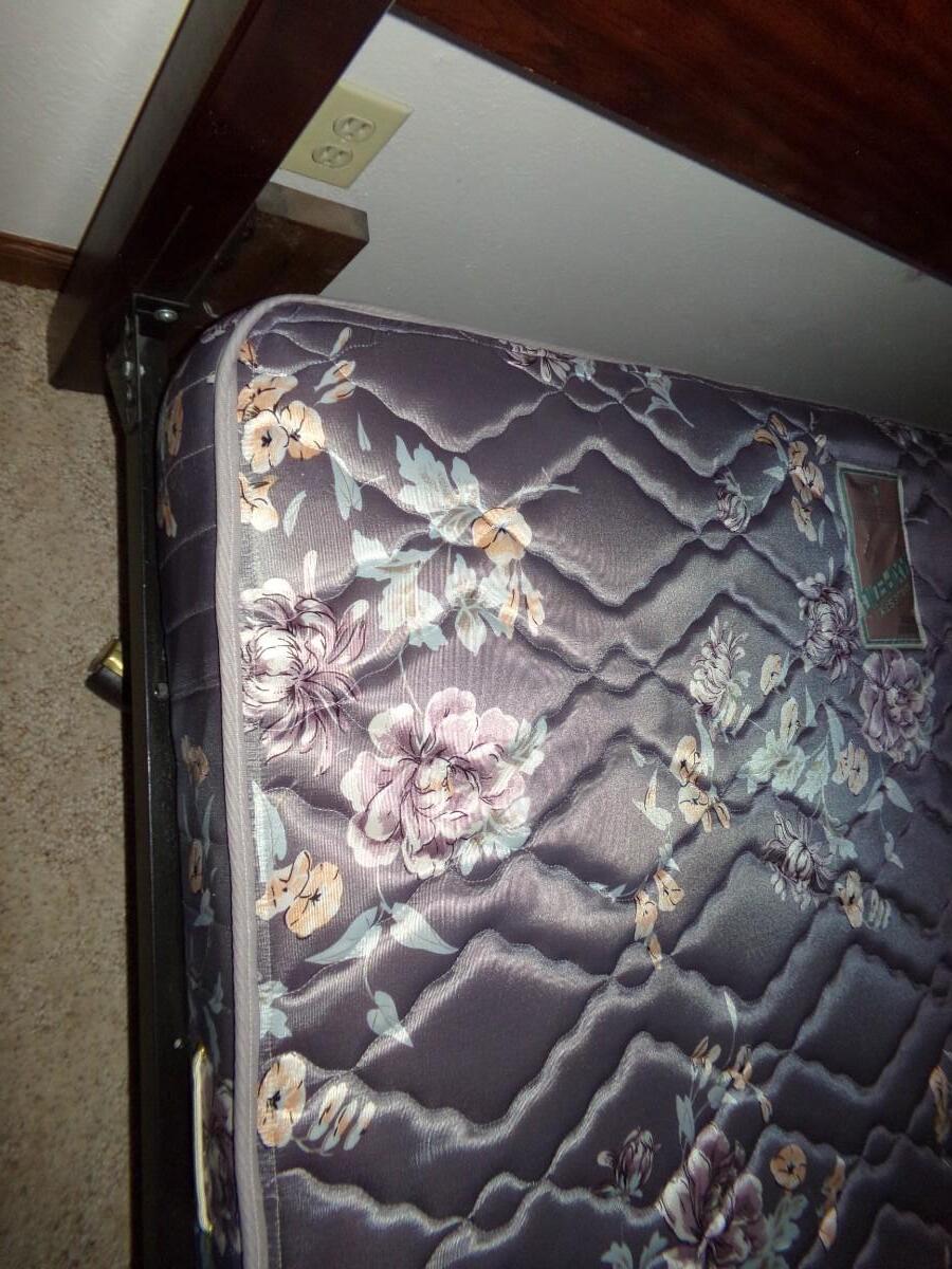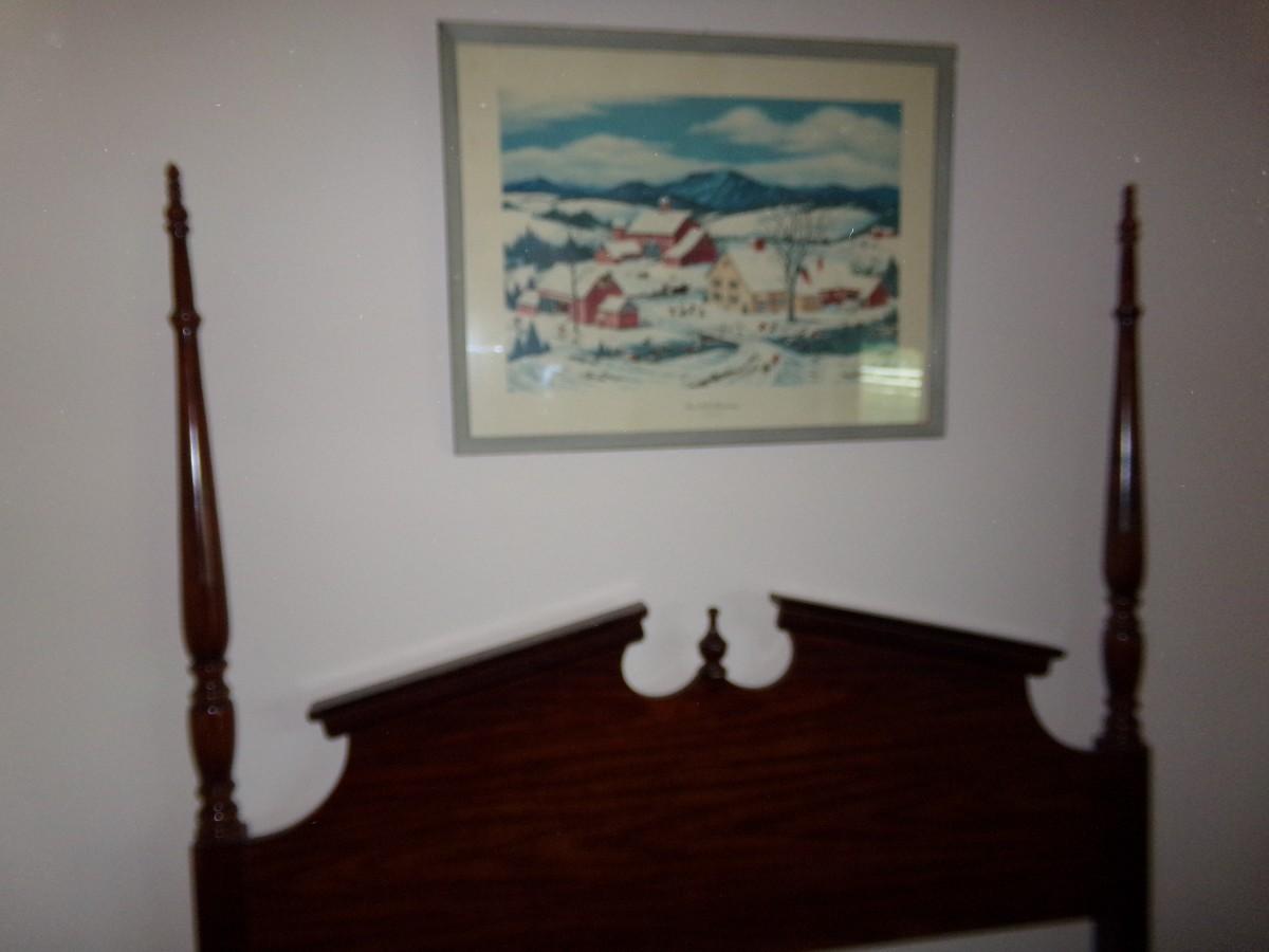 NICE POSTER BED. COMES WITH A MAJESTY MAXIPEDIC MATTRESS, HEADBOARD AND FRAME. ALSO A FRAMED WALL PICTURE. THIS BED DOES NOT HAVE A BOX SPRING.