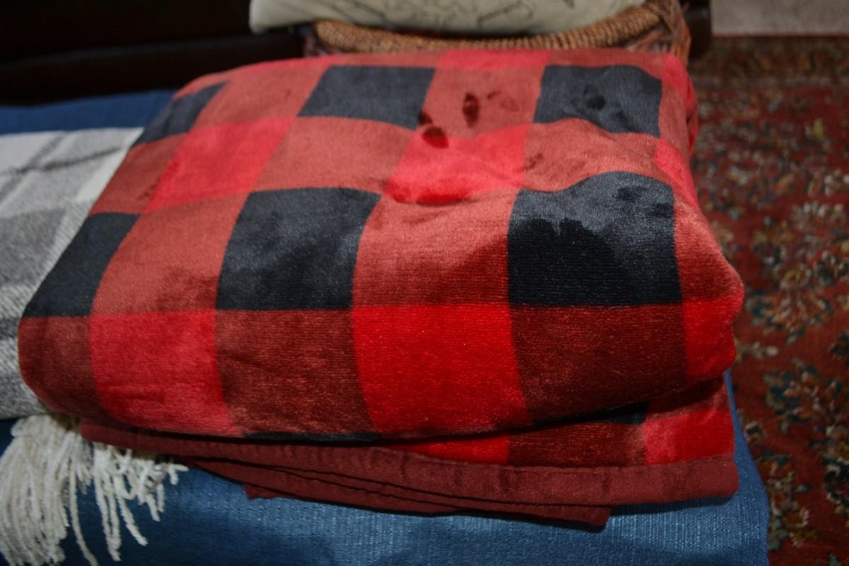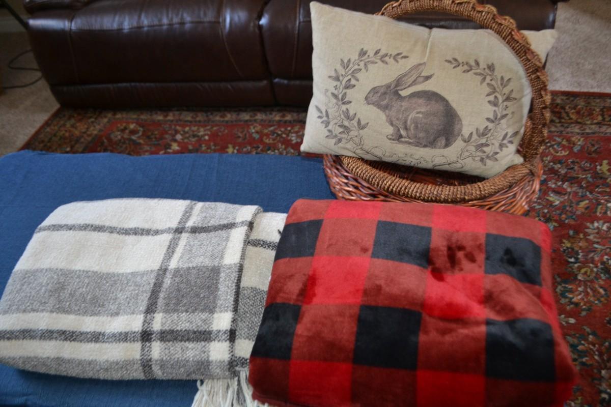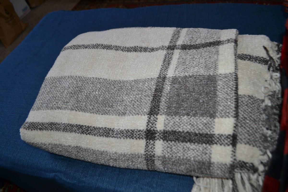 LOT 584. THROW BLANKETS, PILLOW AND BASKET
