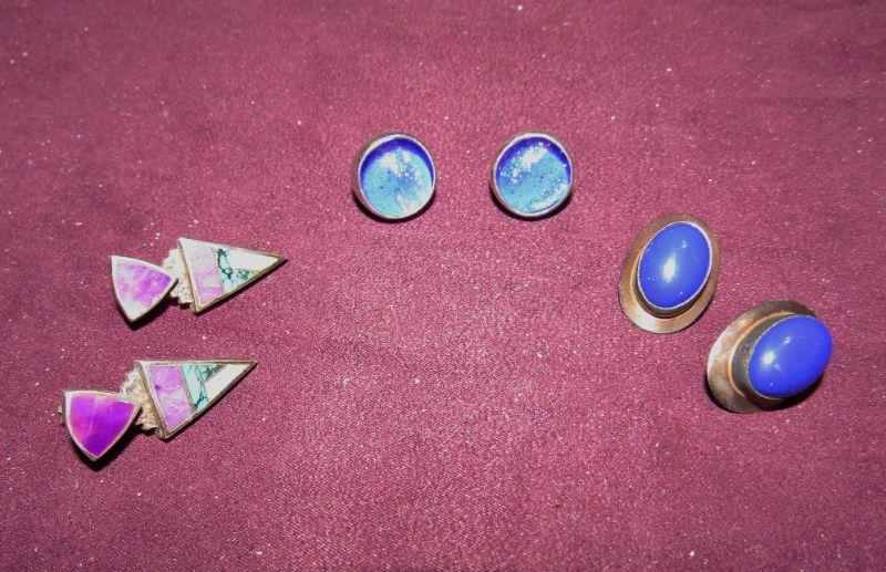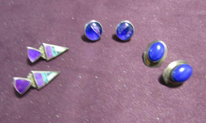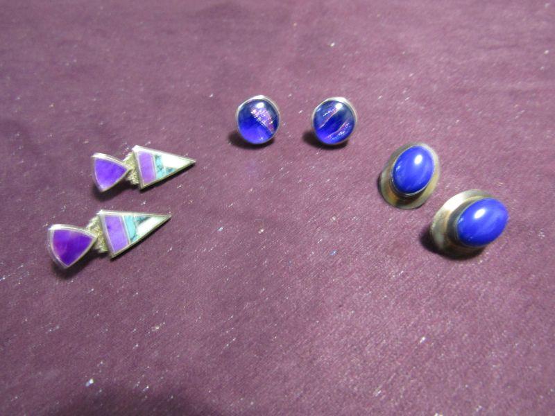 3 PAIRS OF LADIES STERLING SILVER PIERCED EARRINGS WITH GORGEOUS COLORFUL STONES/GEMS