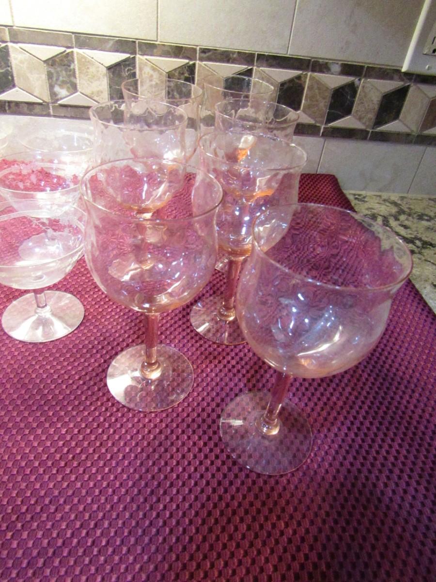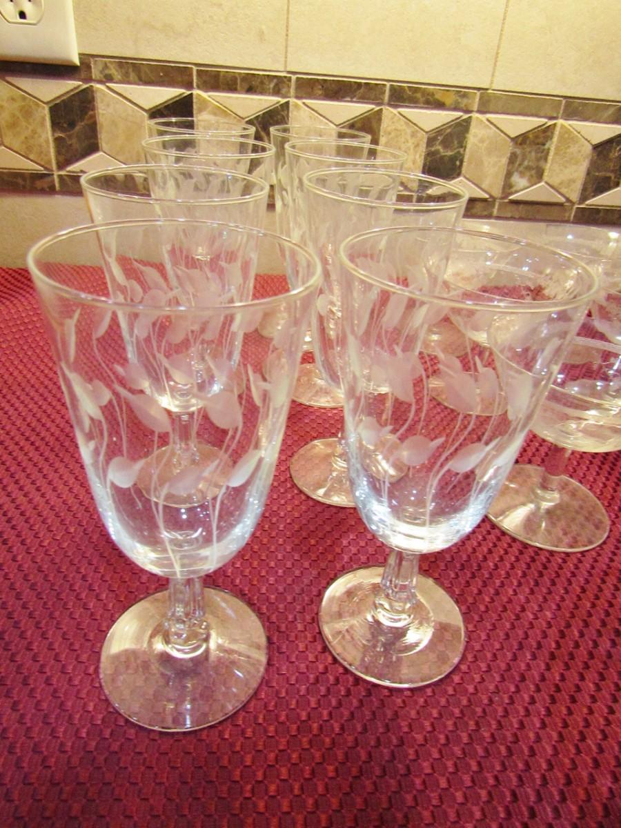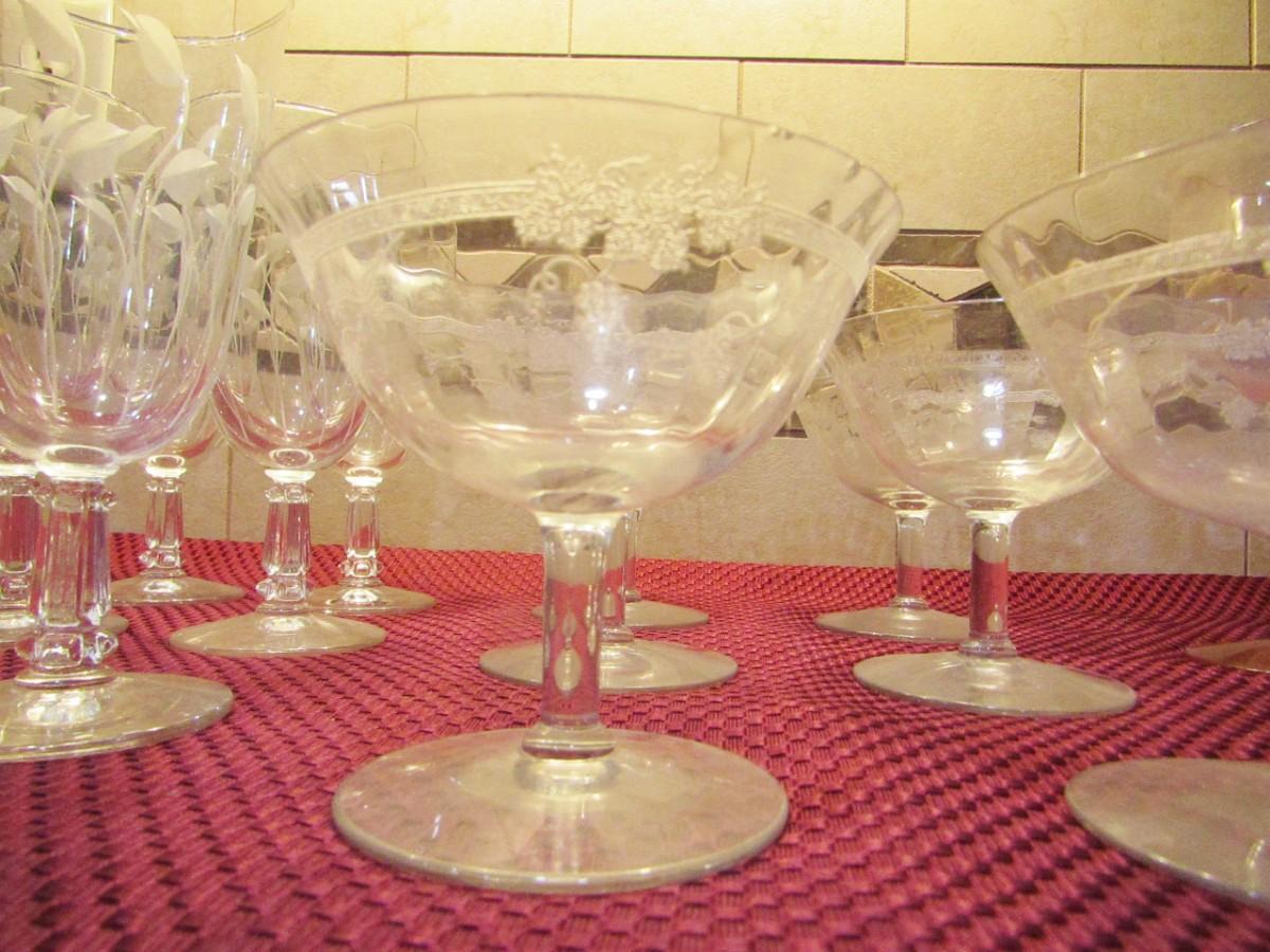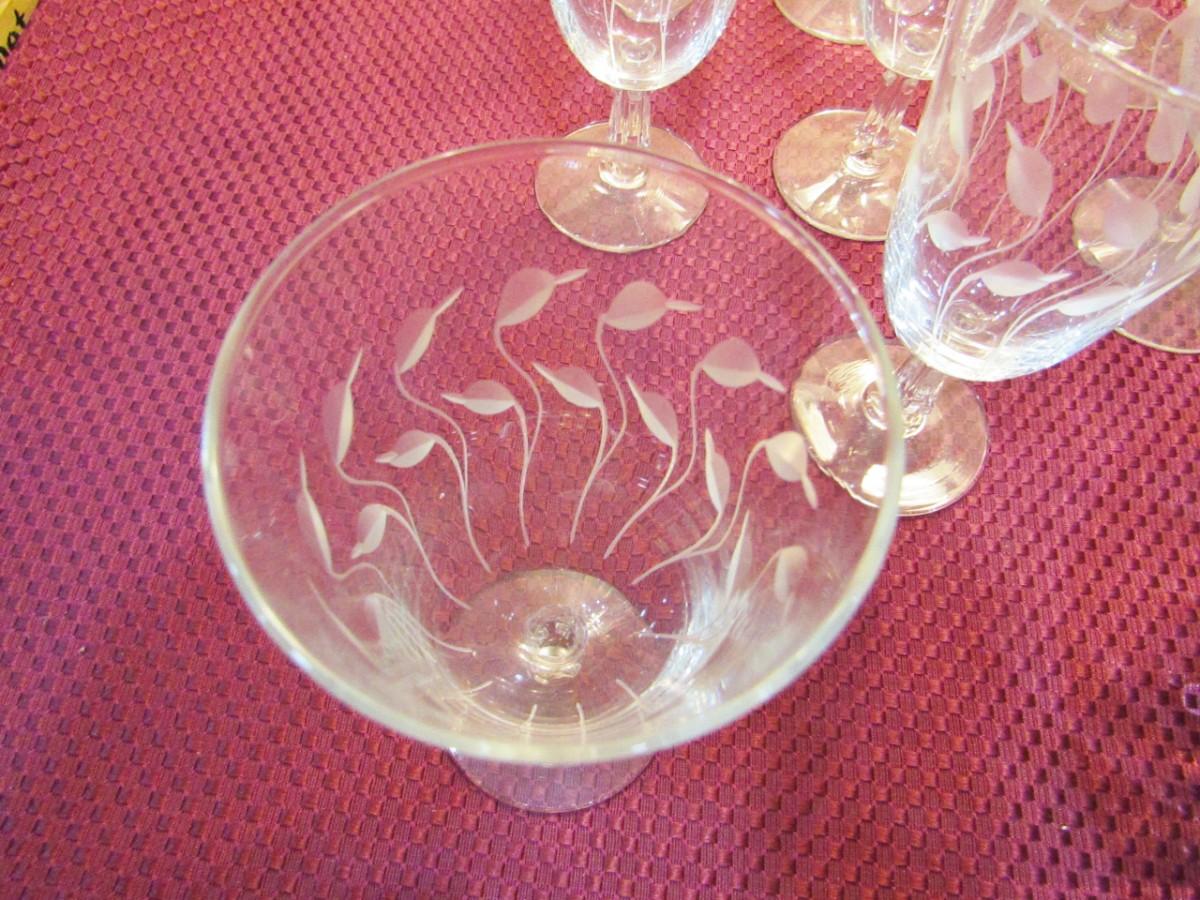 3 DIFFERENT SIZES AND PATTERNS OF STEMMED GLASSES