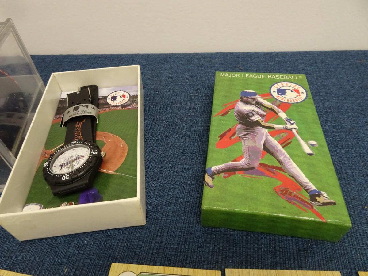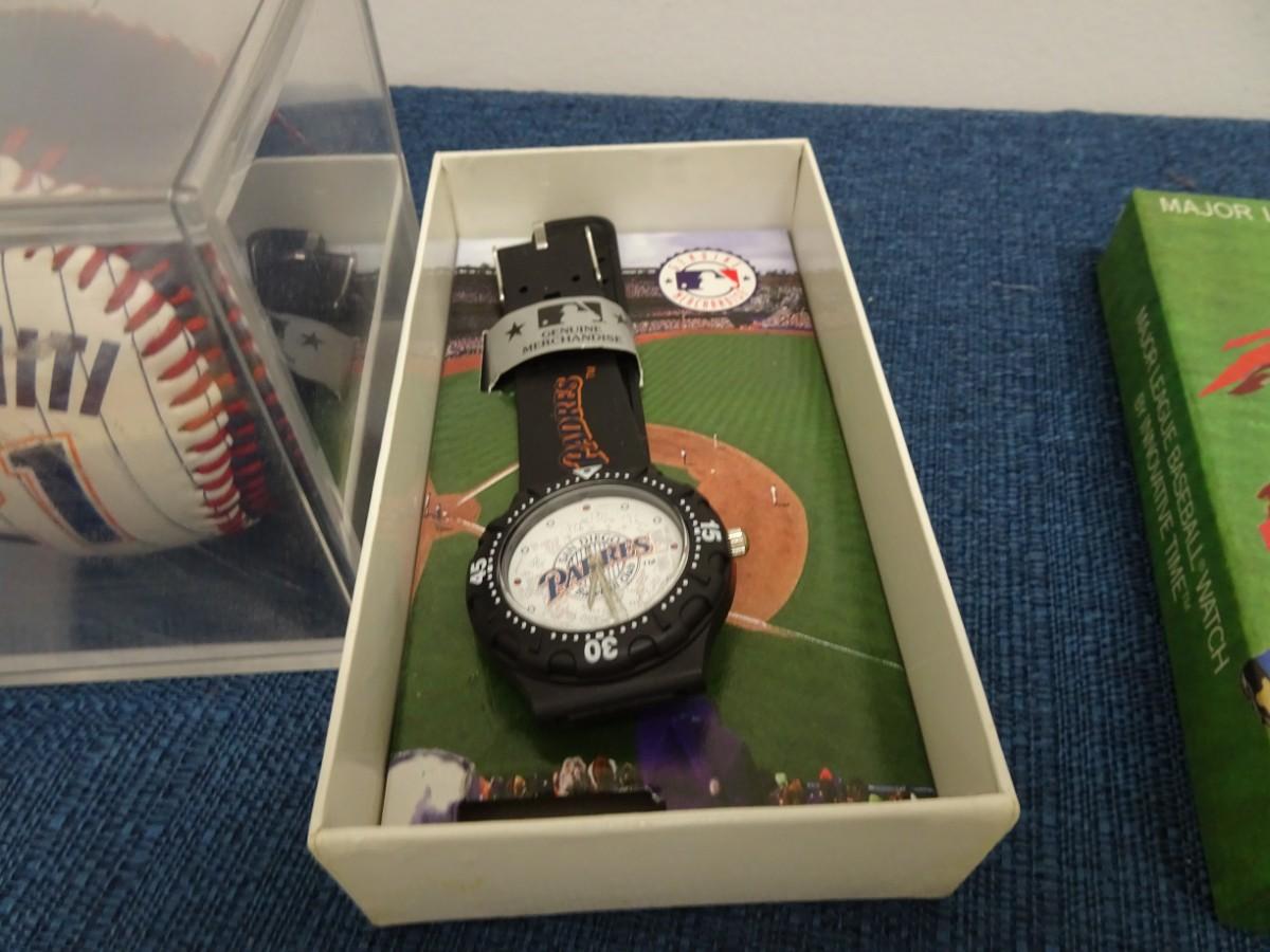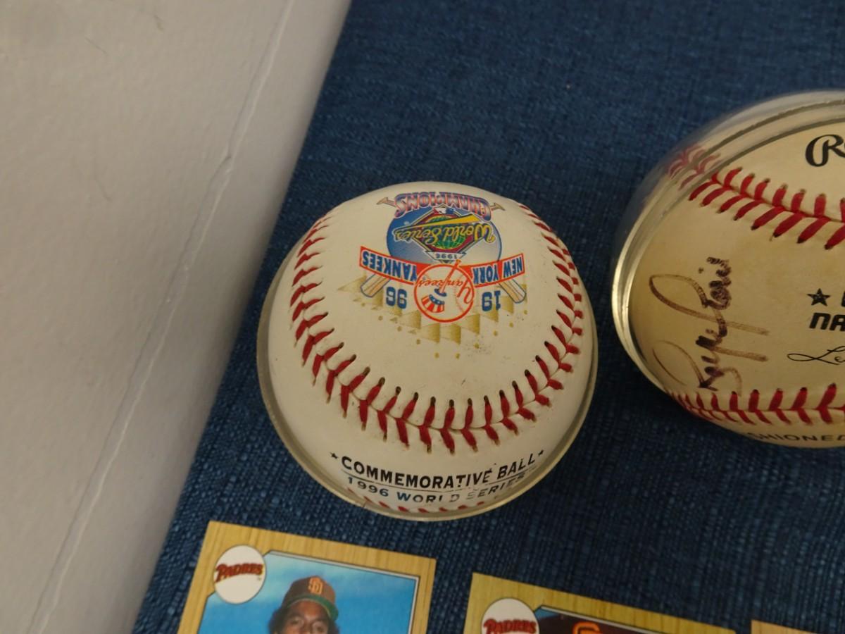 LOT 587 SMALL COLLECTION OF BASEBALLS AND CARDS AND WATCH