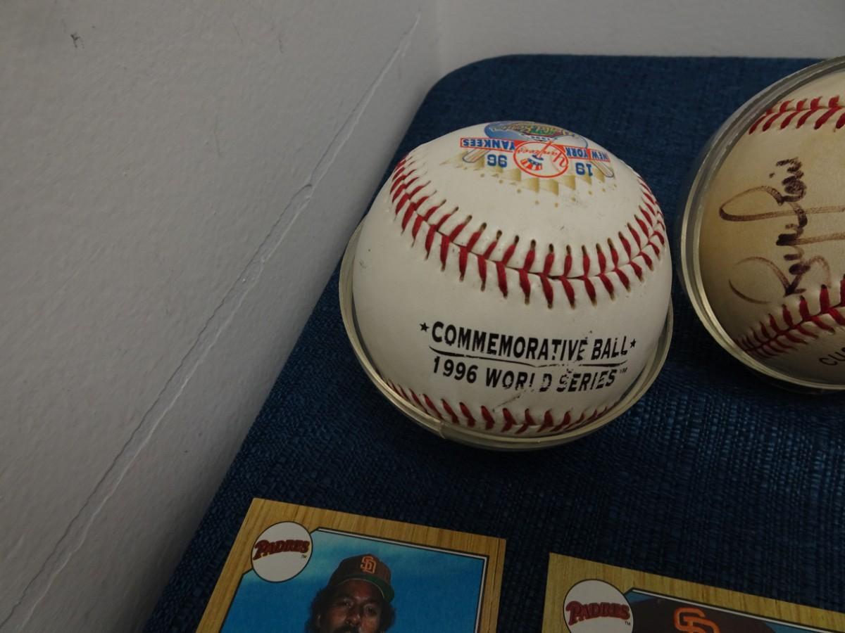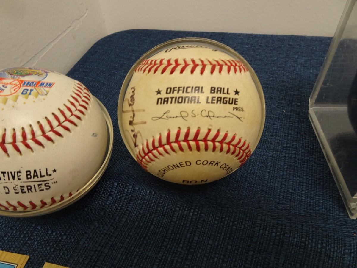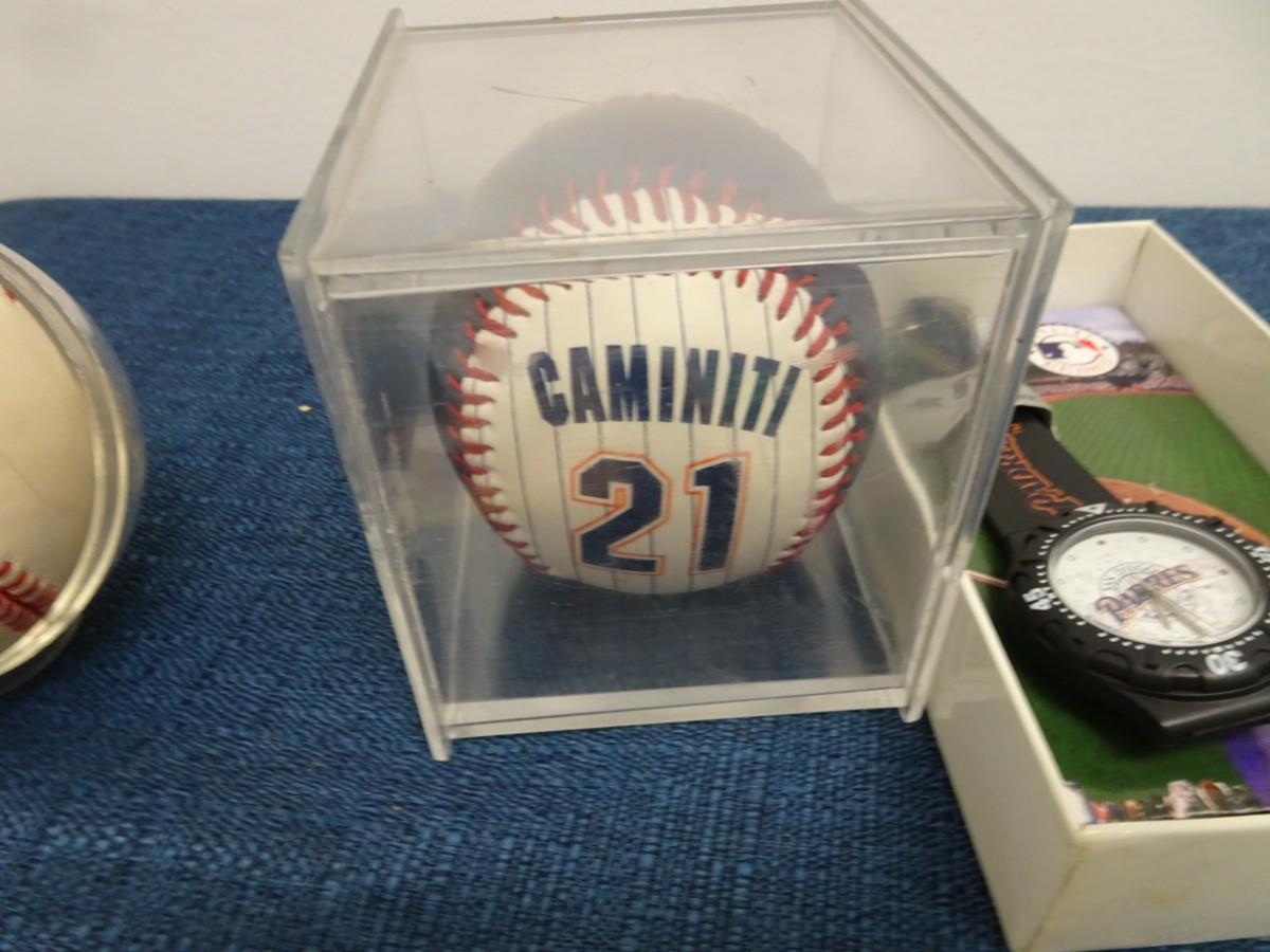 LOT 587 SMALL COLLECTION OF BASEBALLS AND CARDS AND WATCH