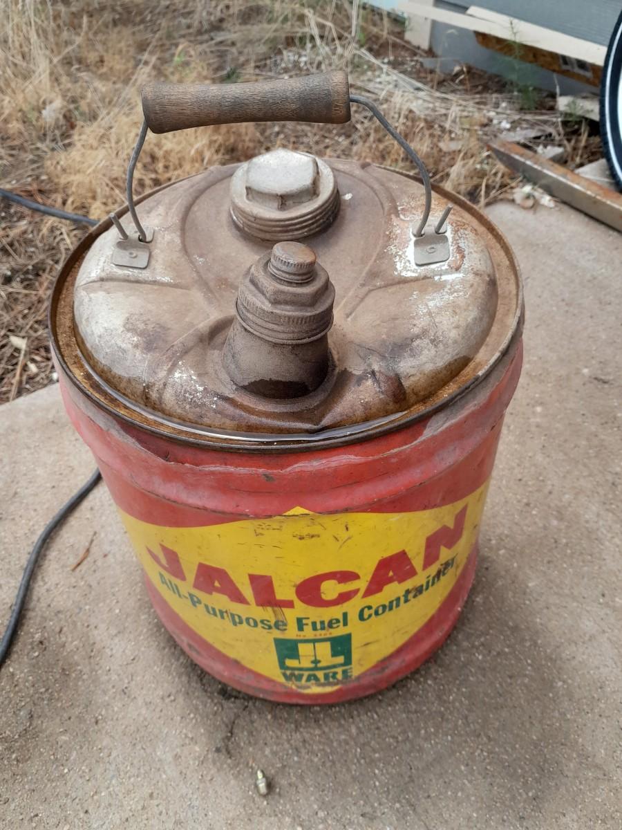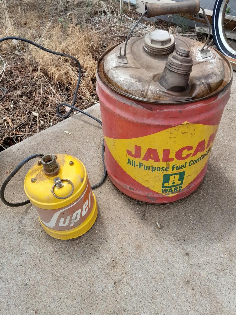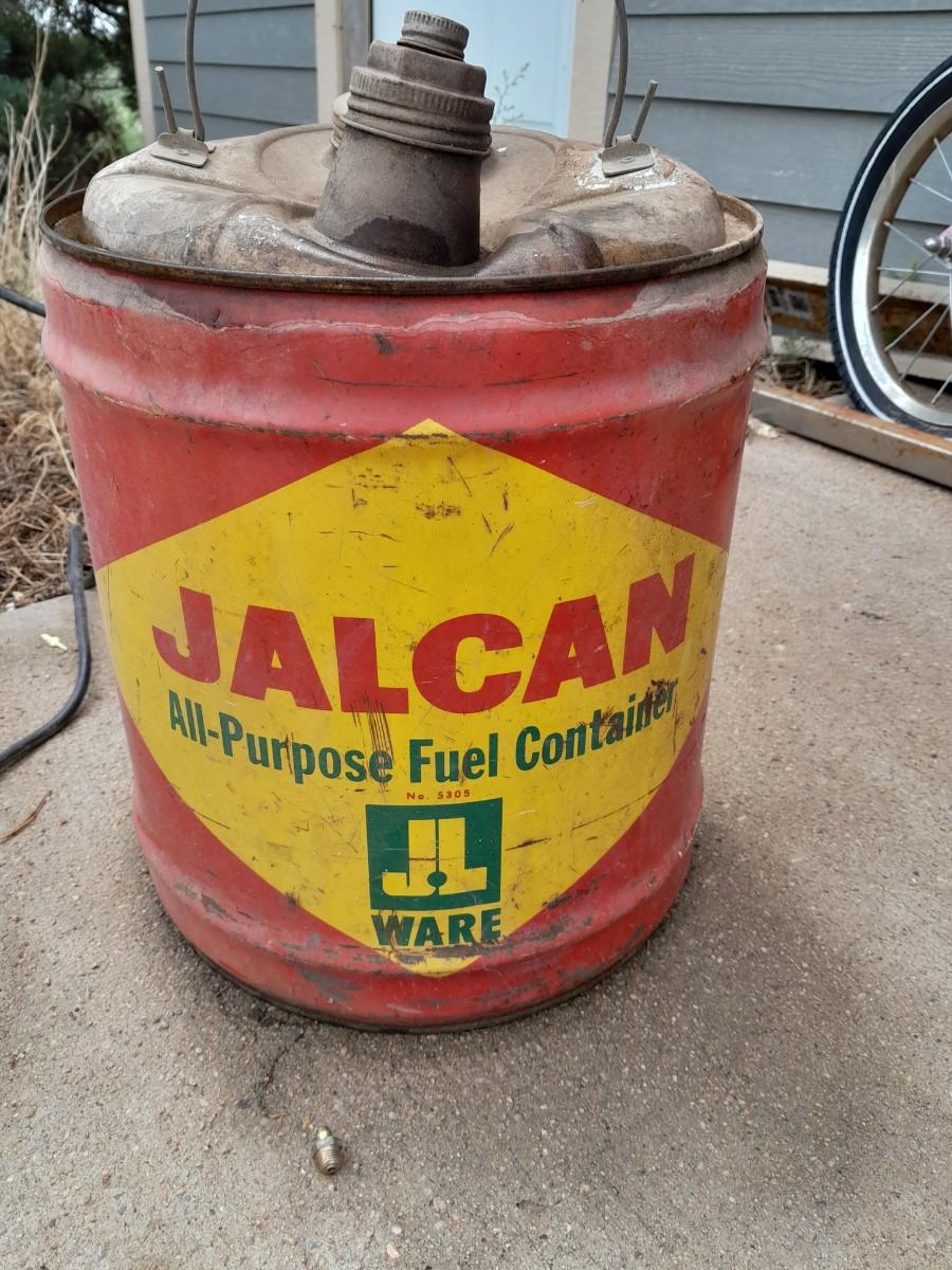 LOT 587 METAL JALCAN FUEL CONTAINER AND SMALL SUPER FLO BOTTLE