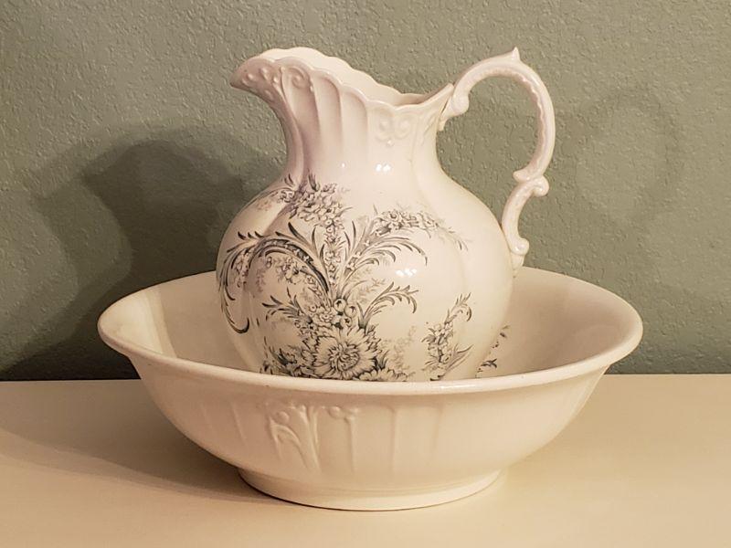 Lot 588: Antique Pitcher & Bowl Transfer Ware
