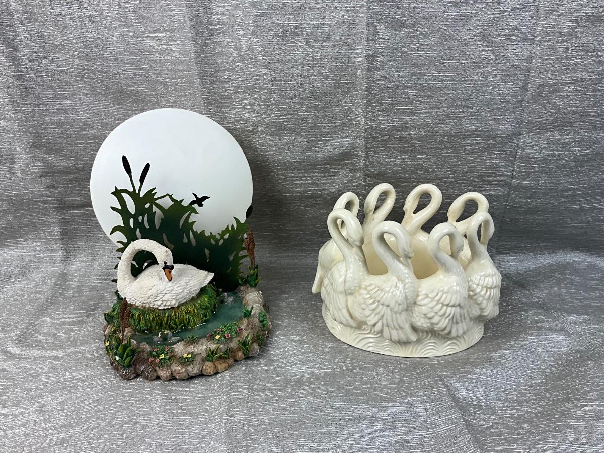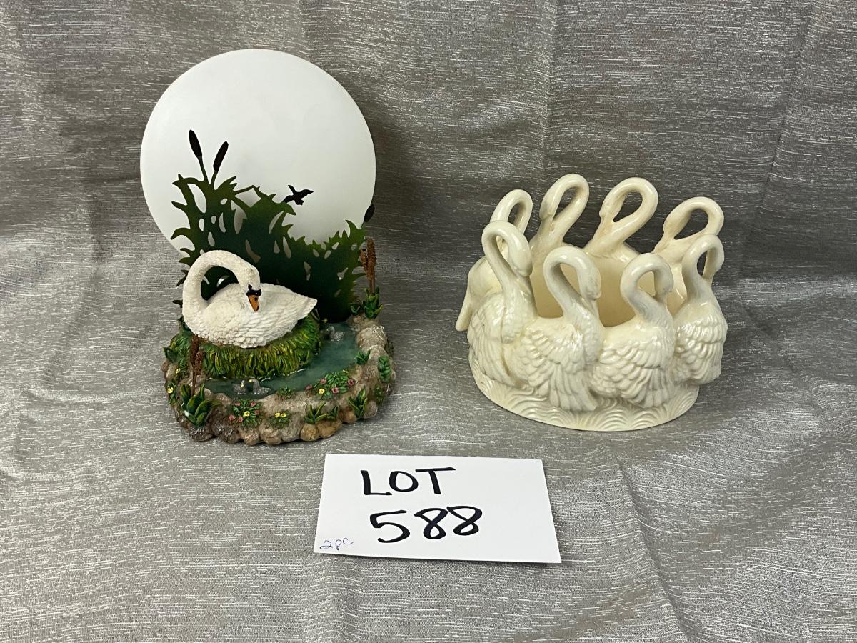 The lot contains a brand new swan light and a Holland mold swan bowl (there is a hairline crack).