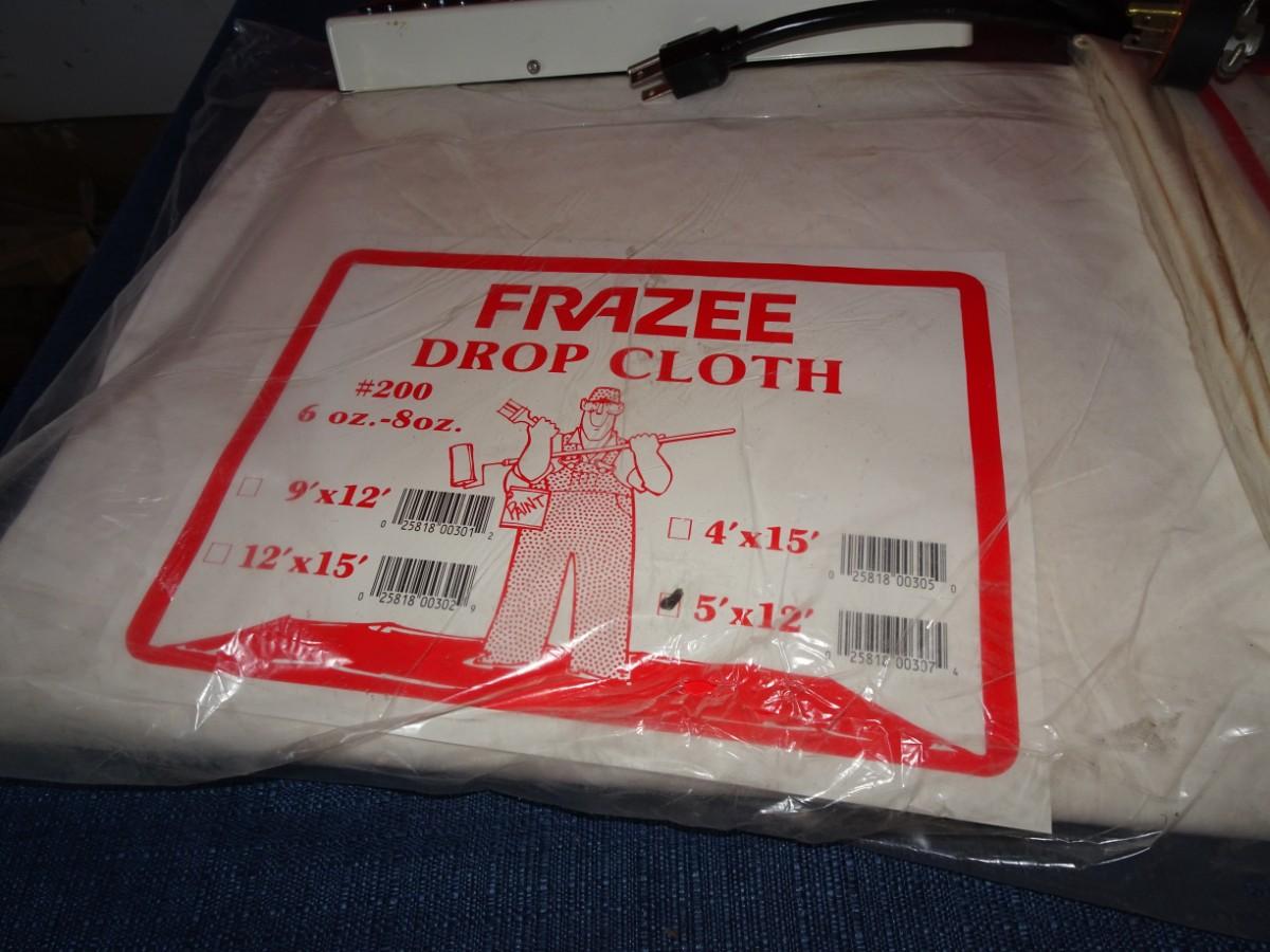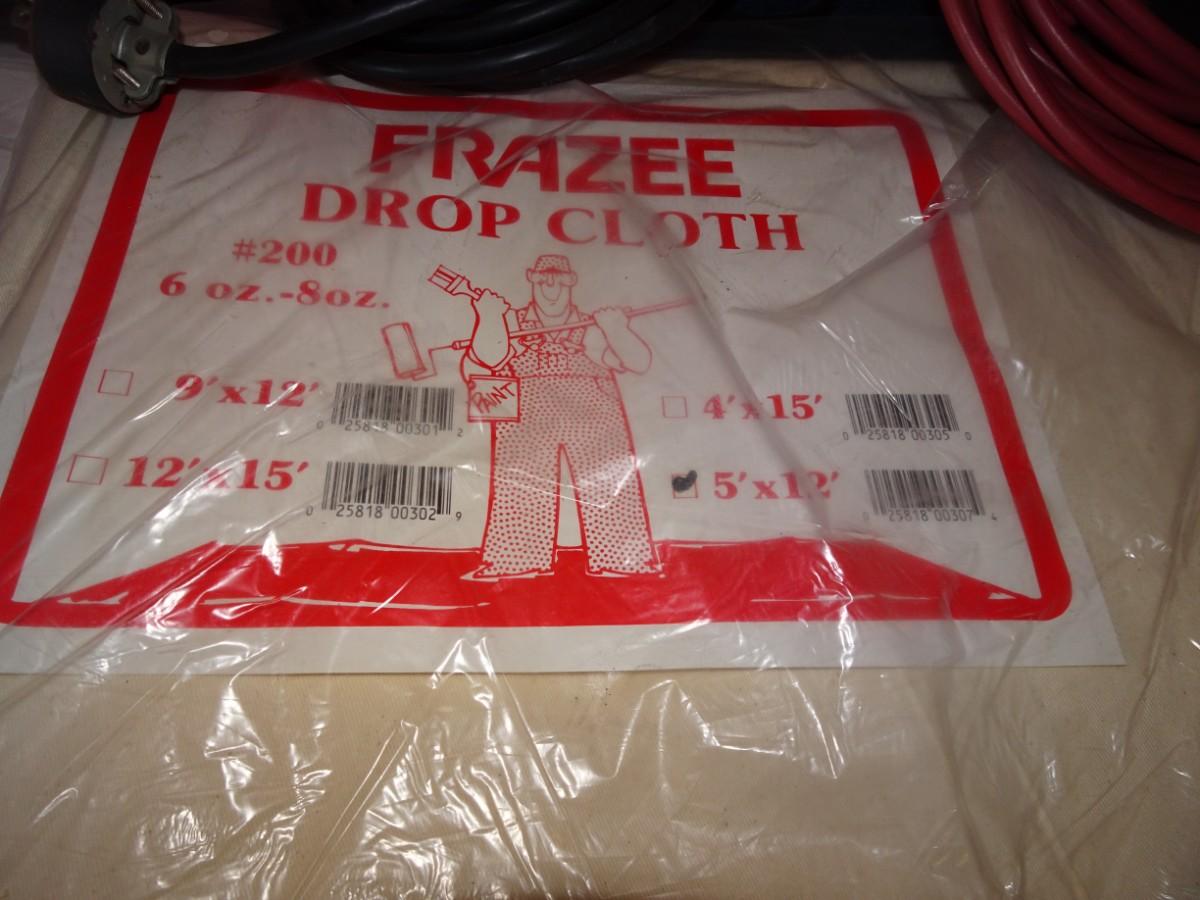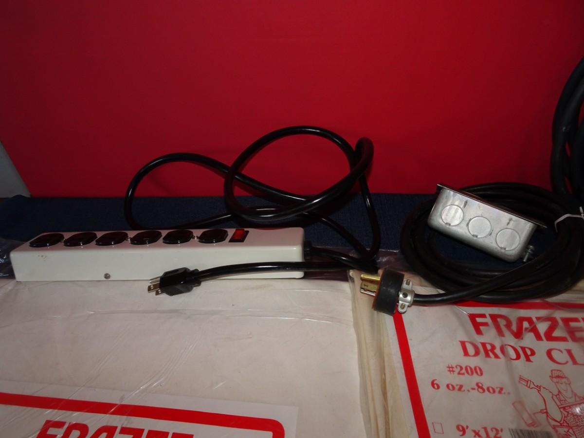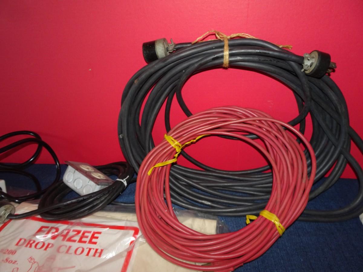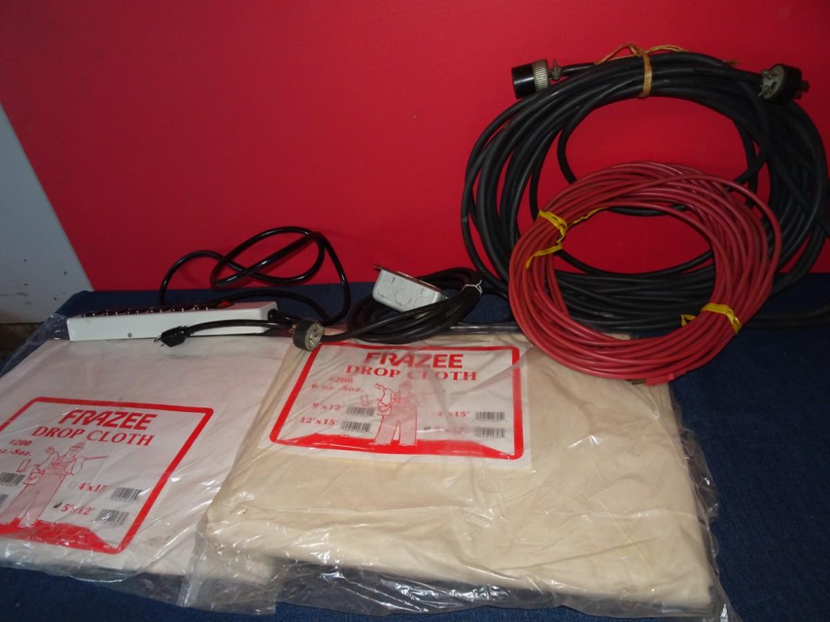 LOT 589. TWO DROP CLOTHS IN PACKAGE AND EXTENSION CORDS