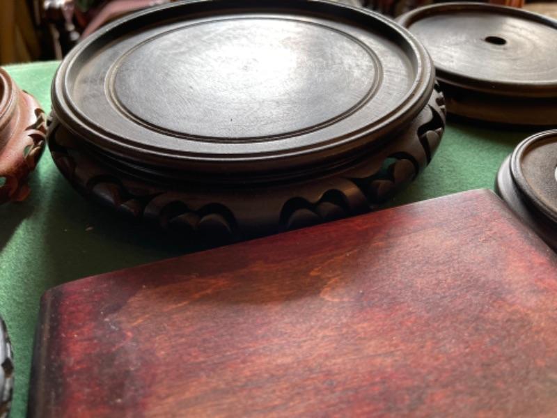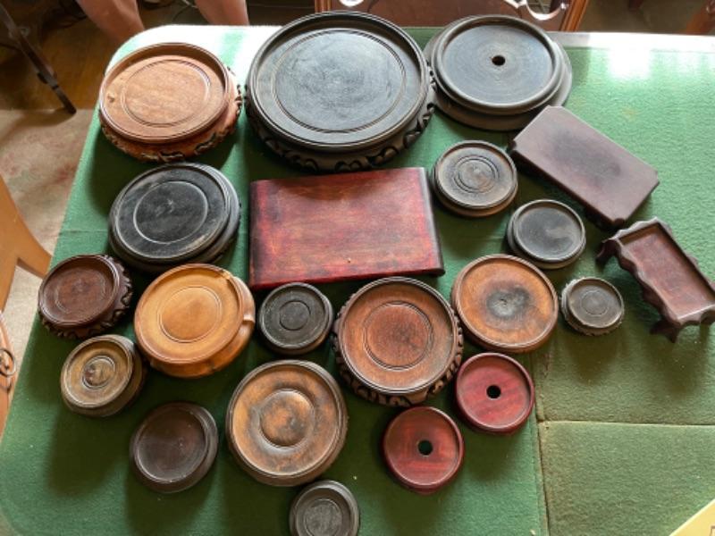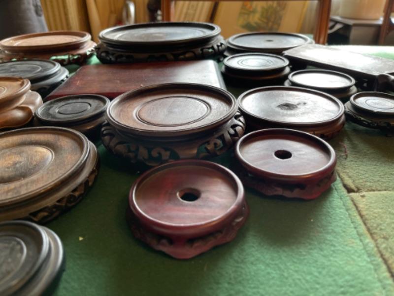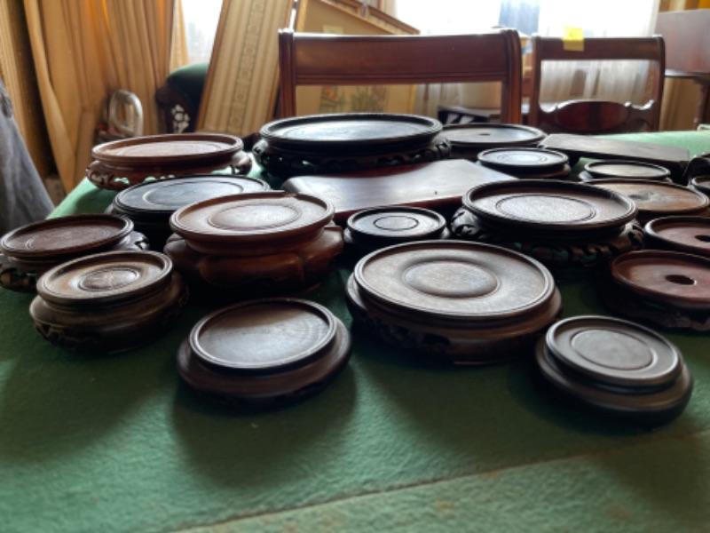 Lot 58DR. Large assortment (24) of oriental hand-carved stands, unusual variety and shapes--$65
