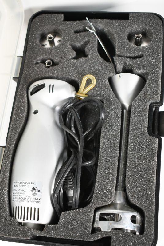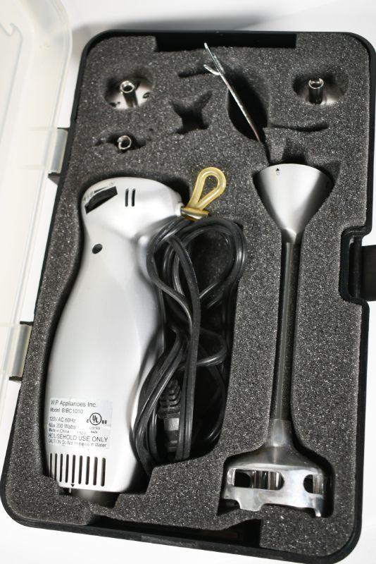 From the Bistro Collection, an immersion mixer, in box. Untested. **Please read Terms and Conditions before placing a bid. Pick up is Sunday, December 22 from 11am to 3pm or Monday, December 23 from 4pm-7pm in Mantua, NJ. All sales are final. All sales are as is, where is. Please review all photos. Props are not included. Measurements are approximate.
