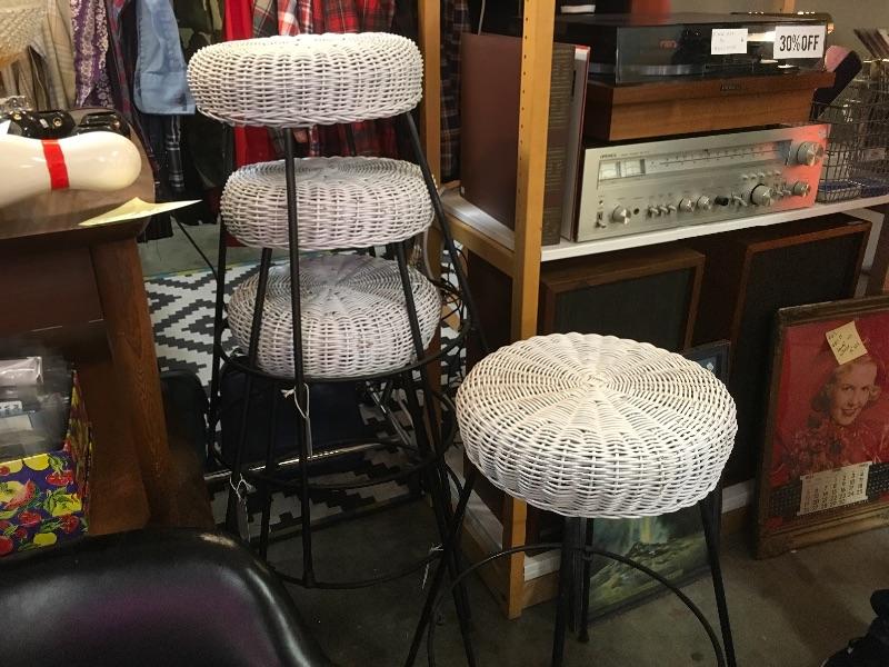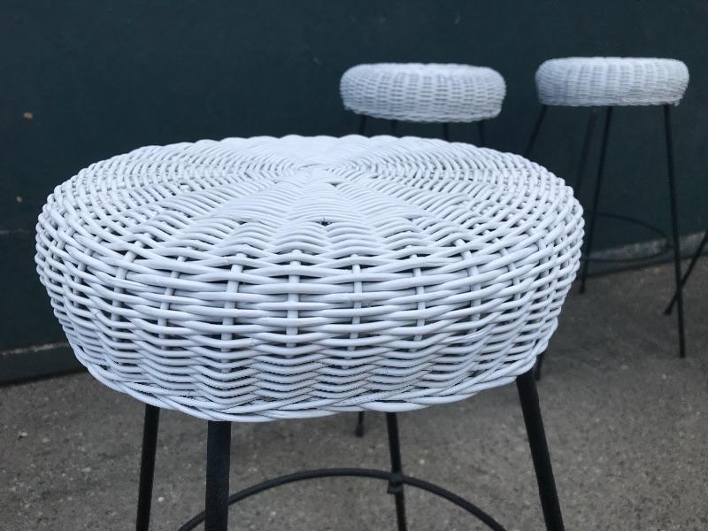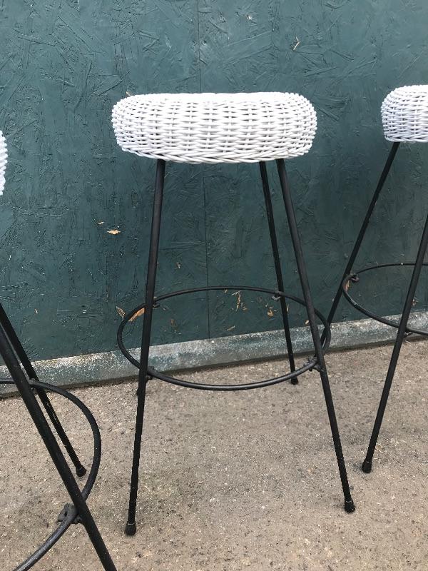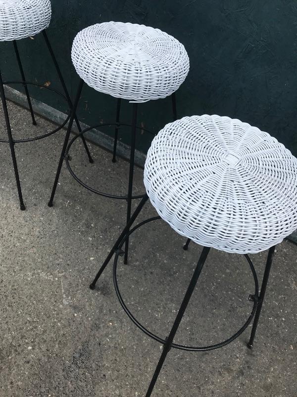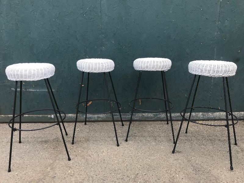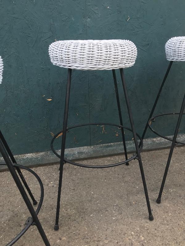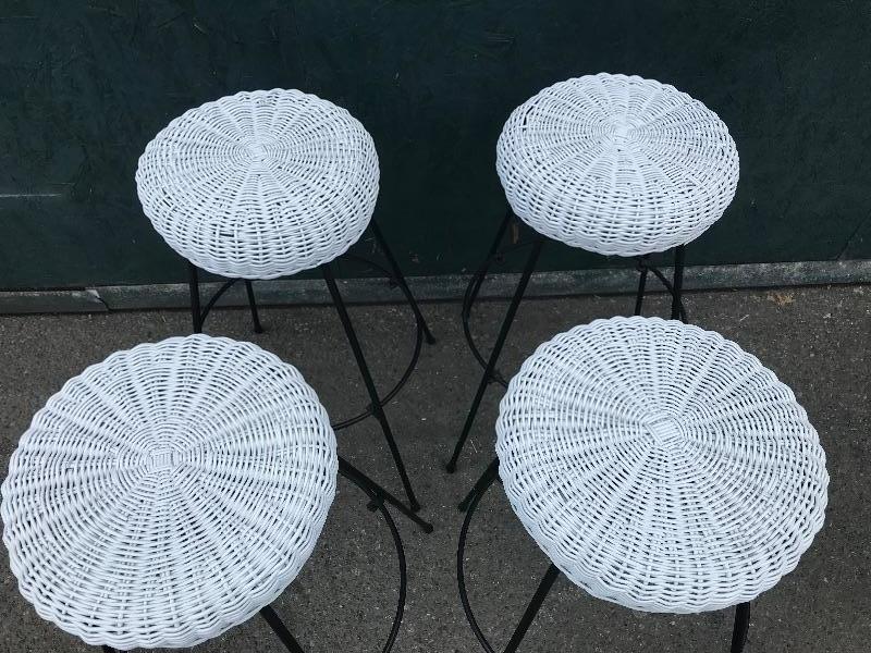 Lot 59 set of 4 30" Paul McCobb Mid Century wicker and metal bar stools