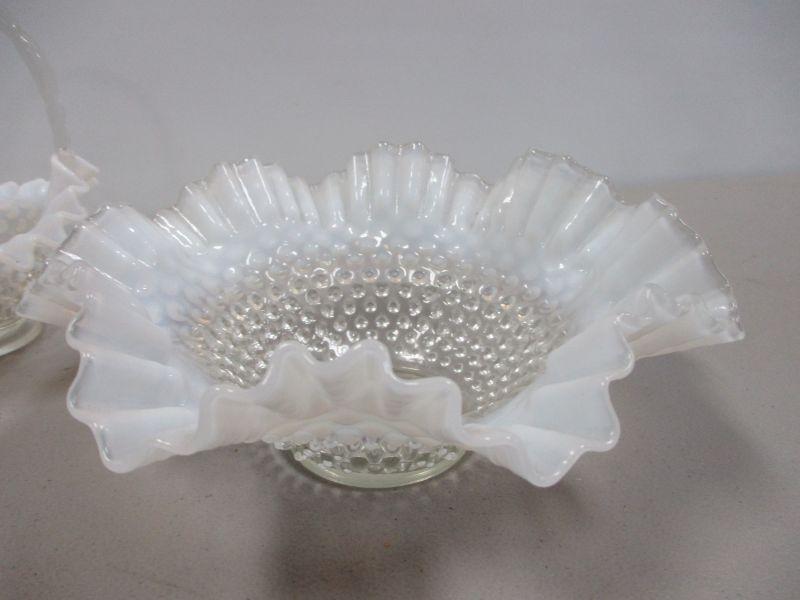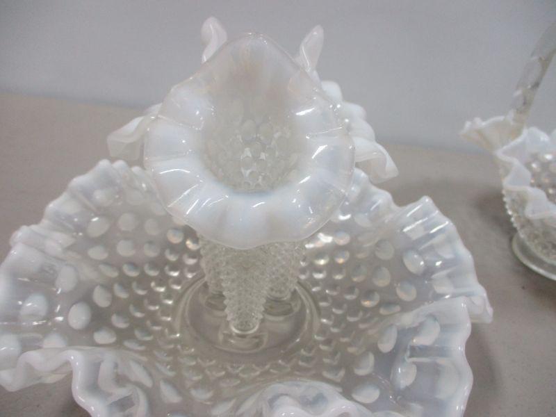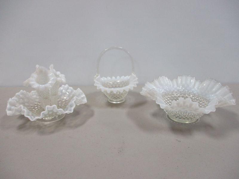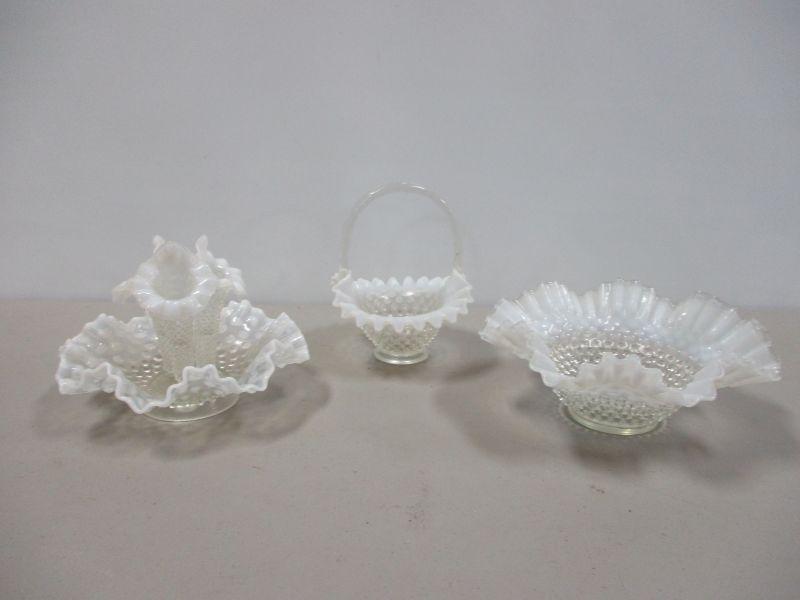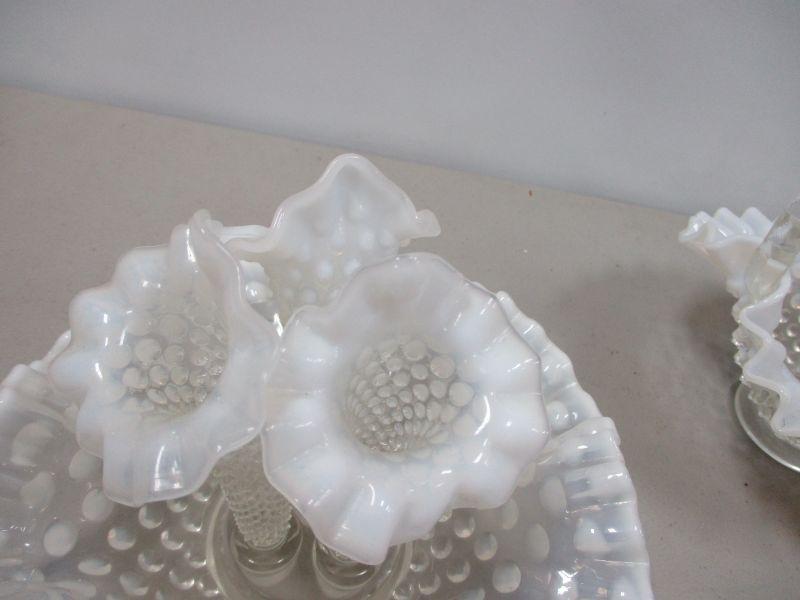 Lot 59 - Fenton Glass Collection 3 Horn Hobnail