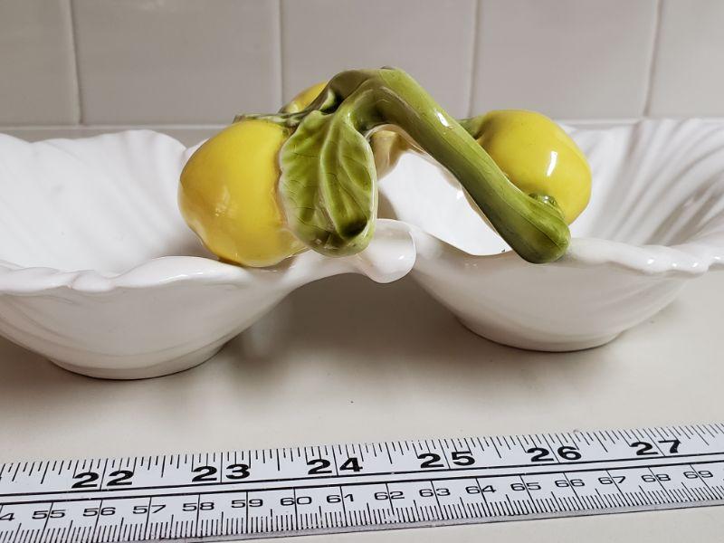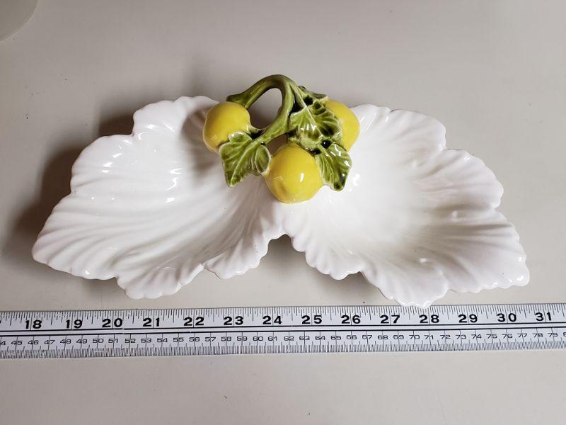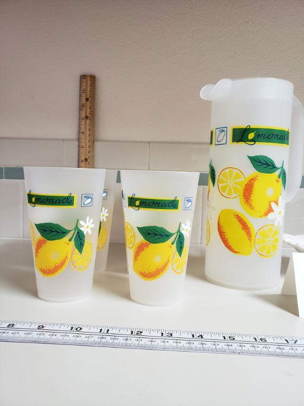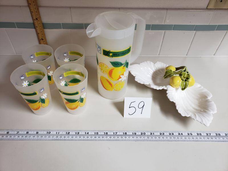 Lot 59: Vintage Porcelain Lemon & Leaf Dish & Plastic Lemonade Pitcher and (4) Cups