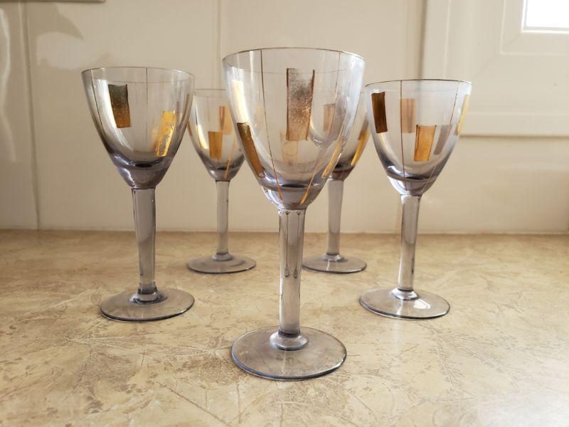 Lot 59: (5) Mid Century Glasses with Gold Design