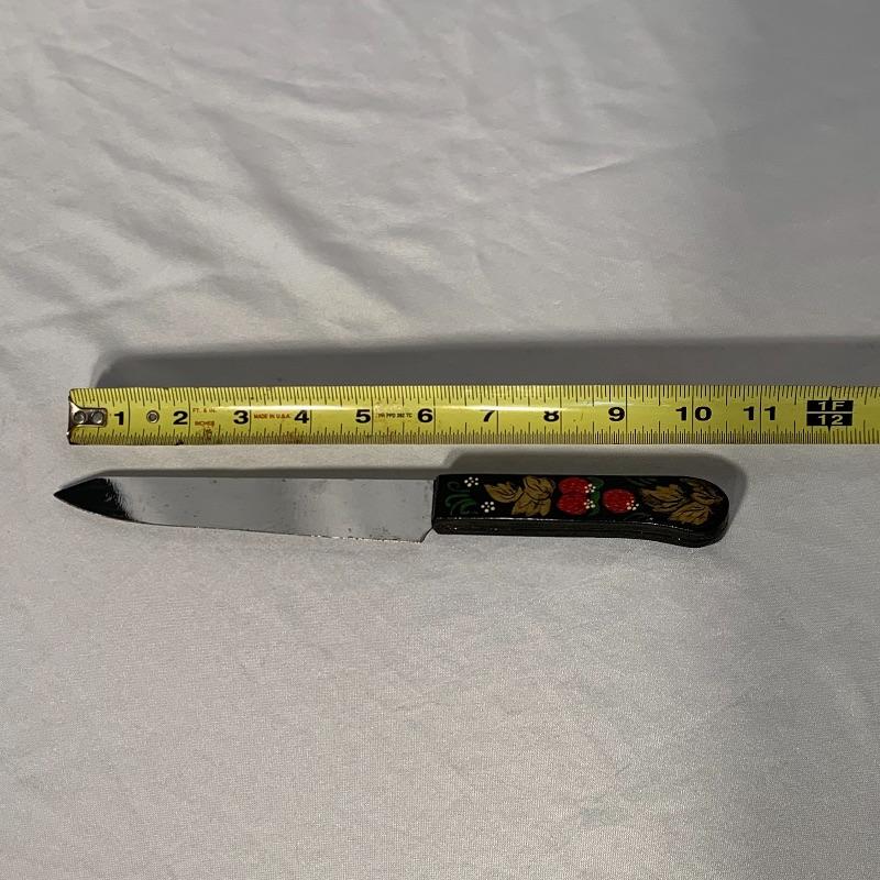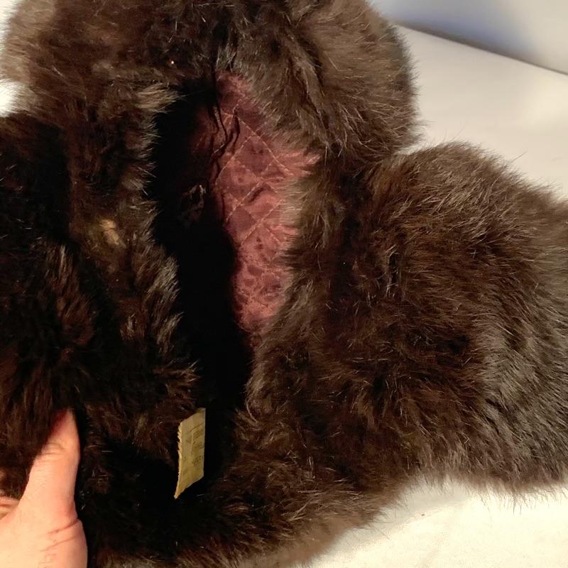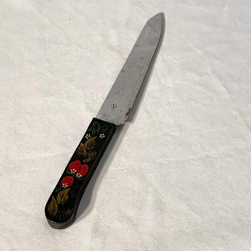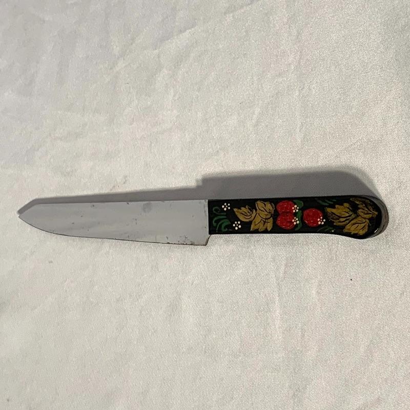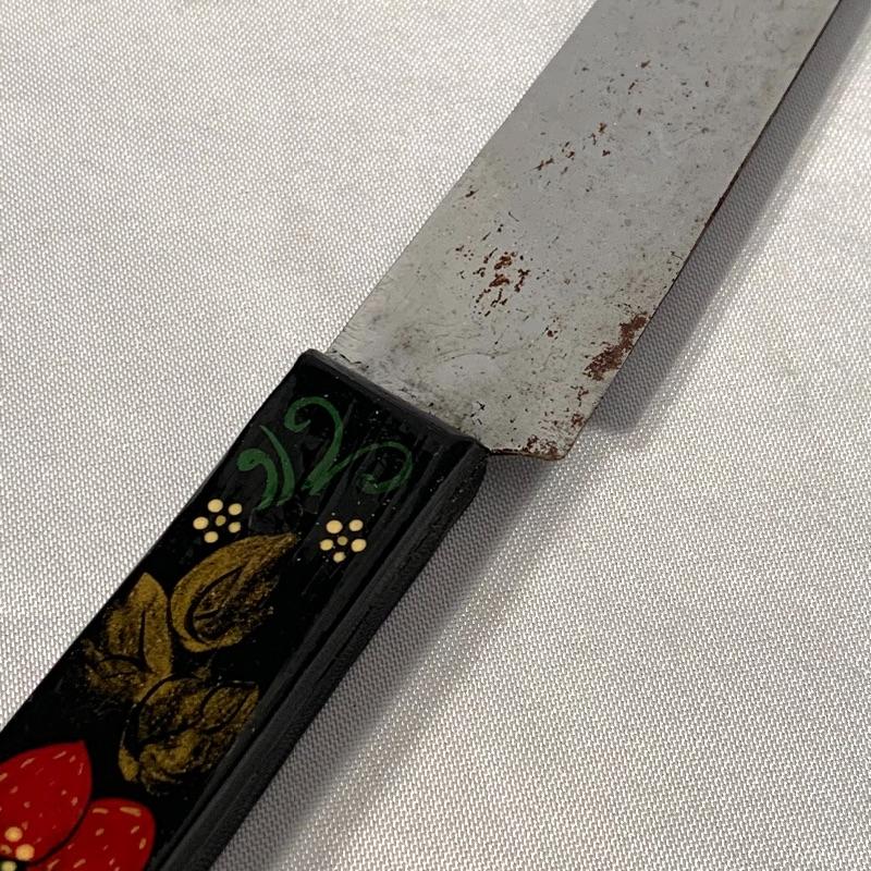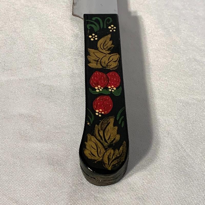 The lot also includes a very soft and warm fur (uncertain if real fur, but seems likely) ushanka-style hat with ear flaps and a string to tie under your chin, as well as a knife with a lovely wooden handle hand-painted with strawberries.