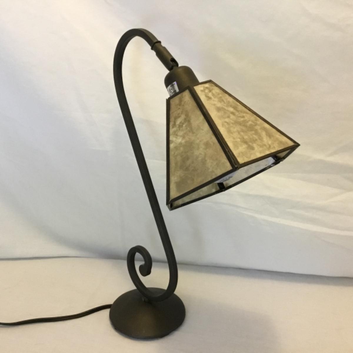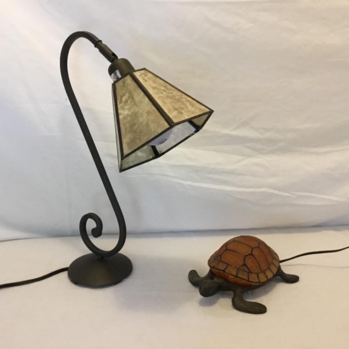 Lot includes an adorable mica lamp, with an adjustable head. See photos, turned on when tested. An additional light source in the lot is a turtle light that turned on when tested. Unique shades create a beautiful glow. Table lamp stands 18" tall. See photos, local pickup only.