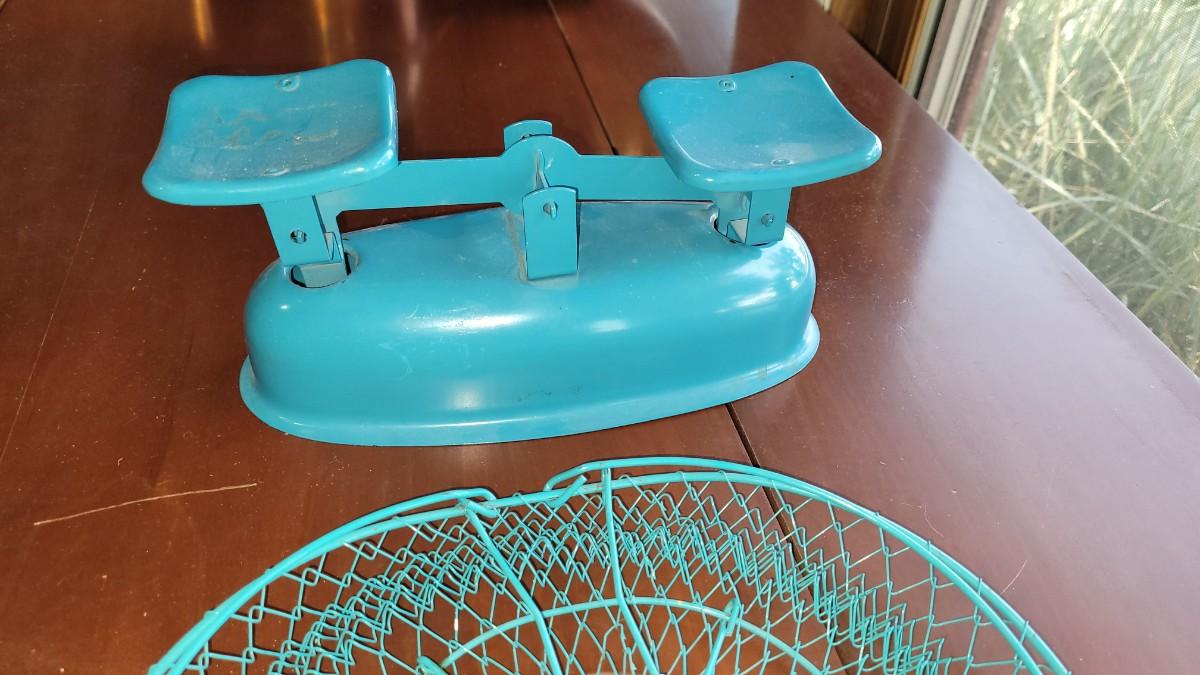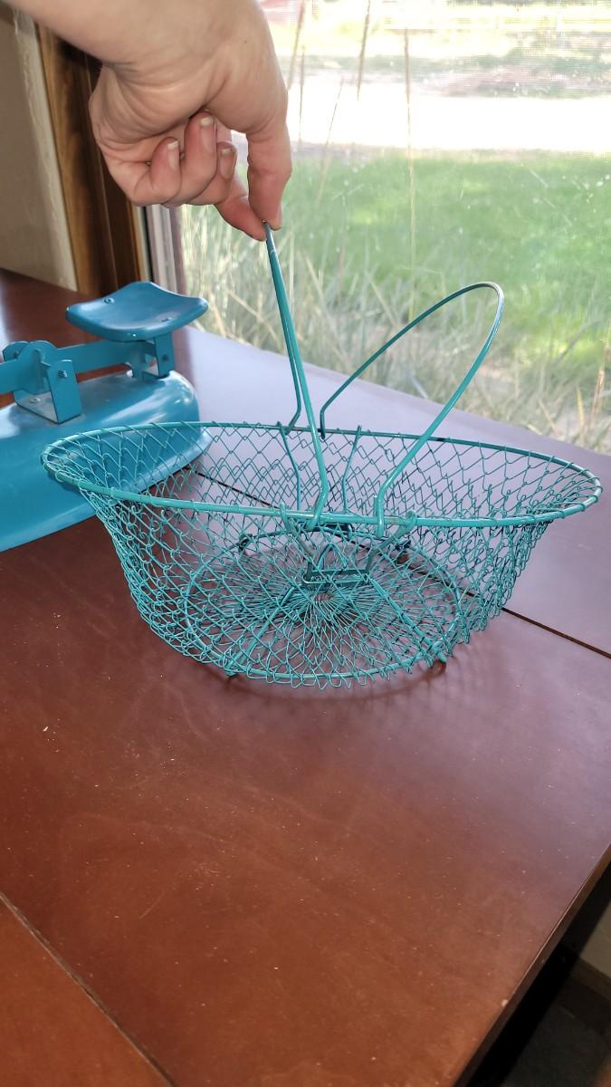 Lot 59: Vintage Turquois Collapsible Basket & Scale