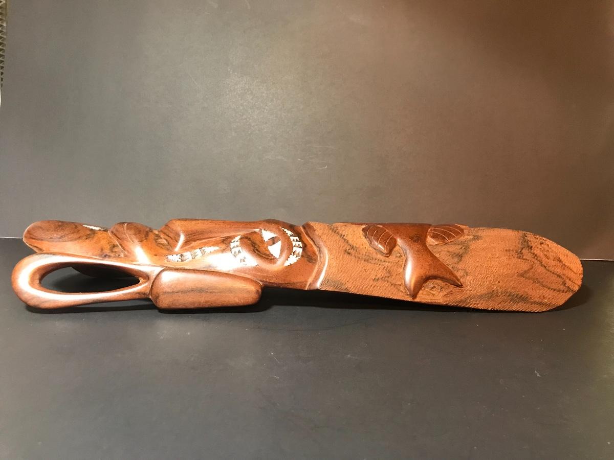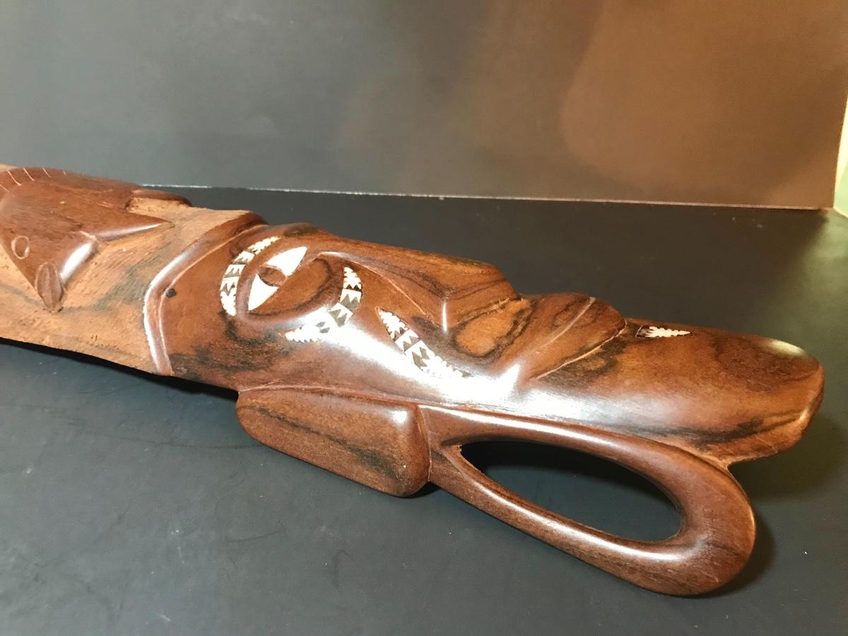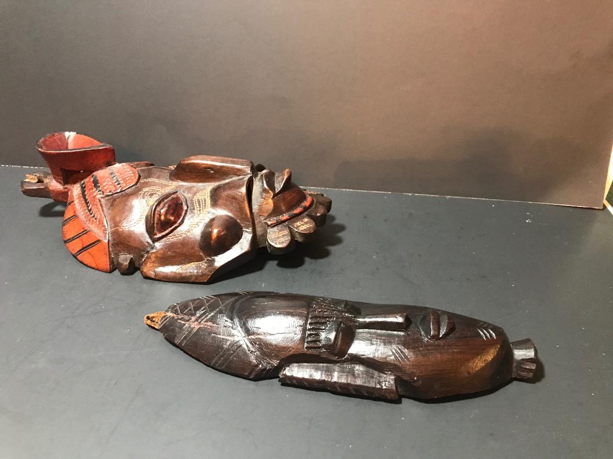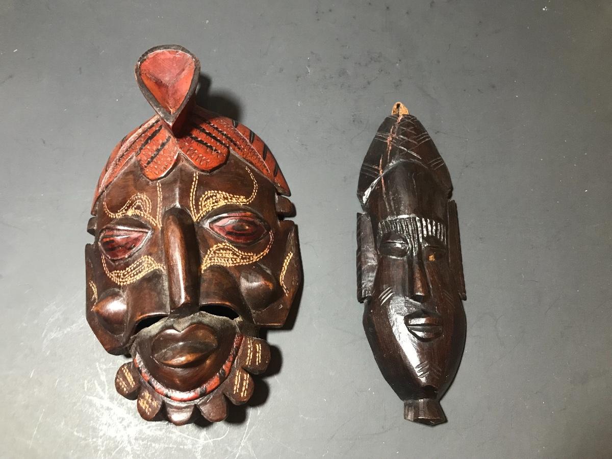 Wooden, hand carved, decorative masks, a war club, and a tiled wooden tray. Please see all pictures as they are the best representation of the items. The pictures show condition, measurements if taken, and what is included in the lot. Due to the large amount that we photograph and the time frame, we are not always able to take measurements. All items unless noted, are pre-owned and have been used. If you purchased furniture, you must bring help. We do not allow one person to carry large furniture out on their own. Bring help, tools and a truck for the safety of our client’s homes, and your personal safety. Company policy. Thank you.