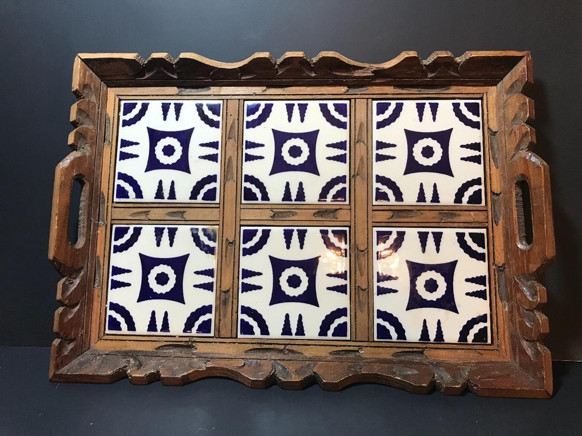 Lot 59: Carved Masks, Tiled Carved Tray and More