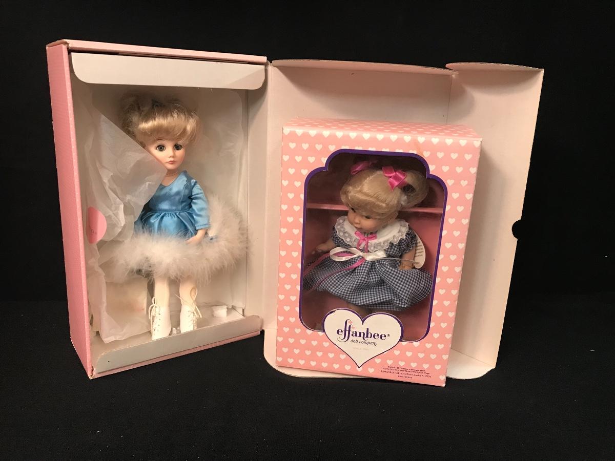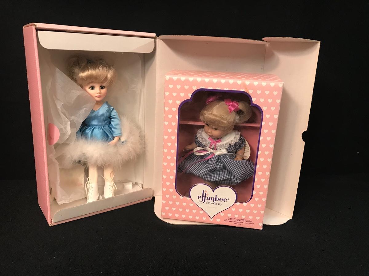 Two Vintage Effanbee Dolls - Katy & Ice Skater. Both appear to have never been out of the box. Show signs of shelf wear. Please see all pictures as they are the best representation of the items. The pictures show condition, measurements if taken, and what is included in the lot. Due to the large amount that we photograph and the time frame, we are not always able to take measurements. All items unless noted, are pre-owned and have been used. If you purchased furniture, you must bring help. We do not allow one person to carry large furniture out on their own. Bring help, tools and a truck for the safety of our client’s homes, and your personal safety. Company policy. Thank you.