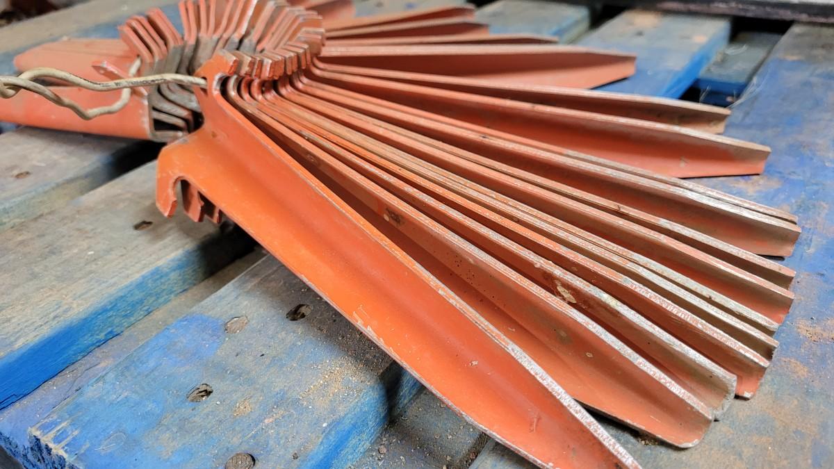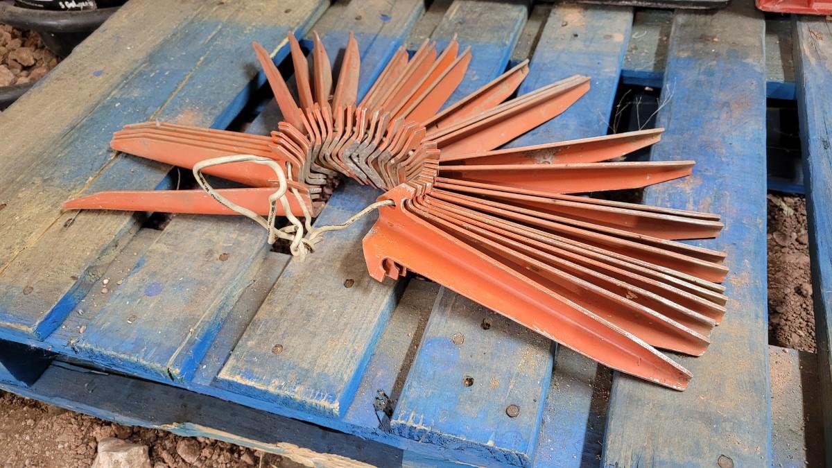 Lot 59: Vintage Orange Metal Farm Garden Stakes