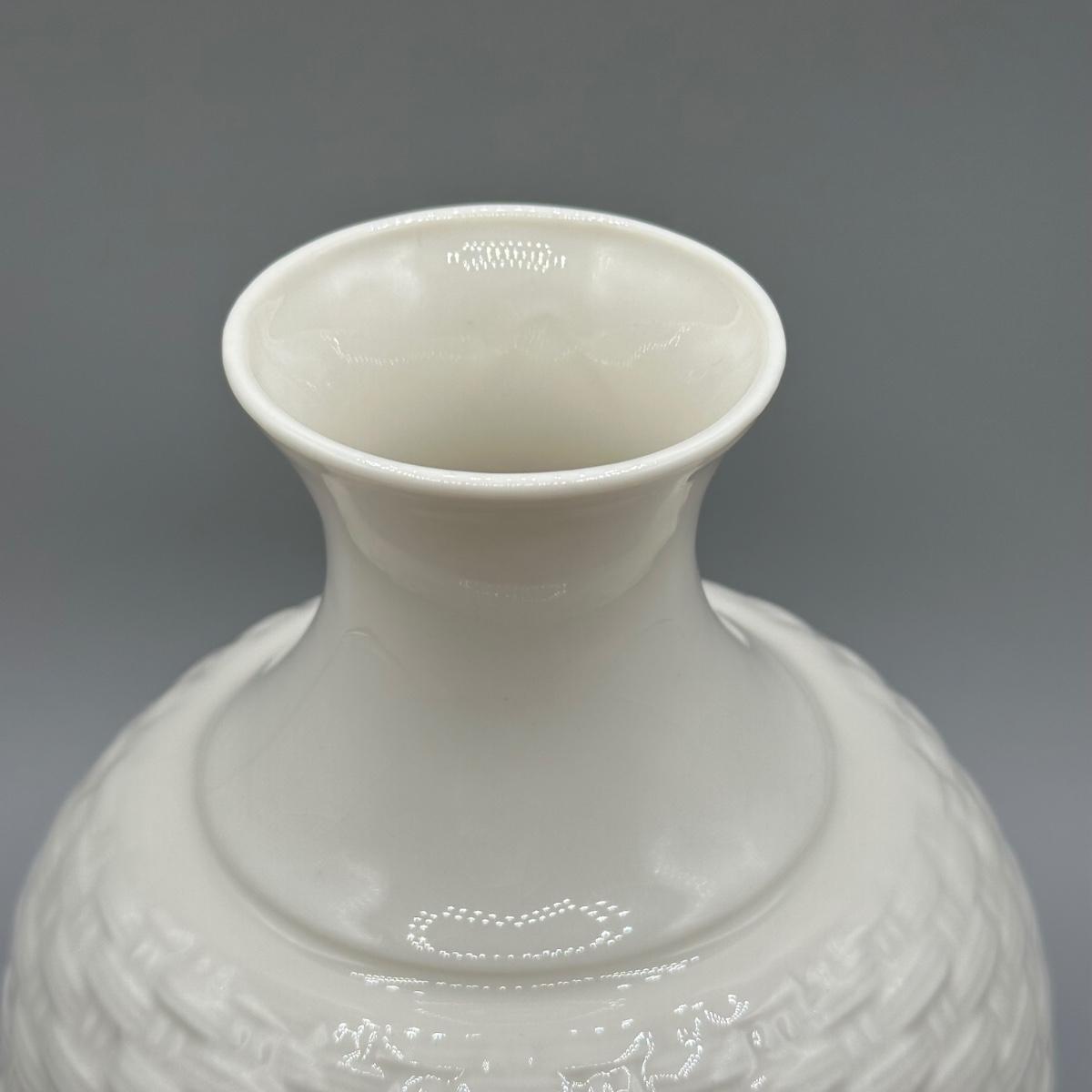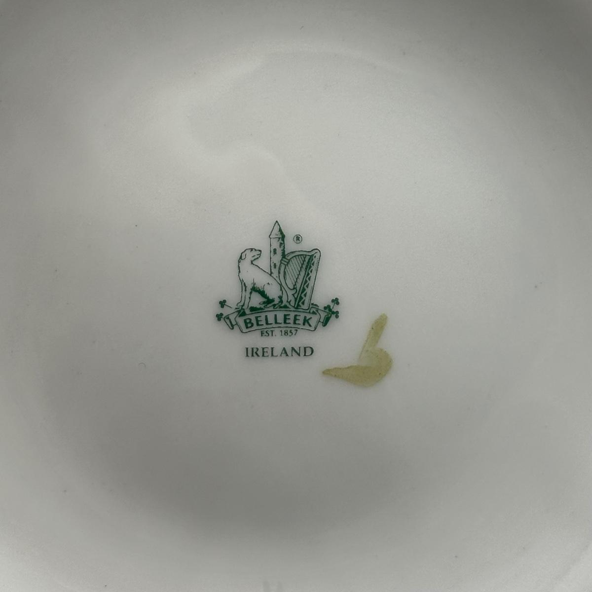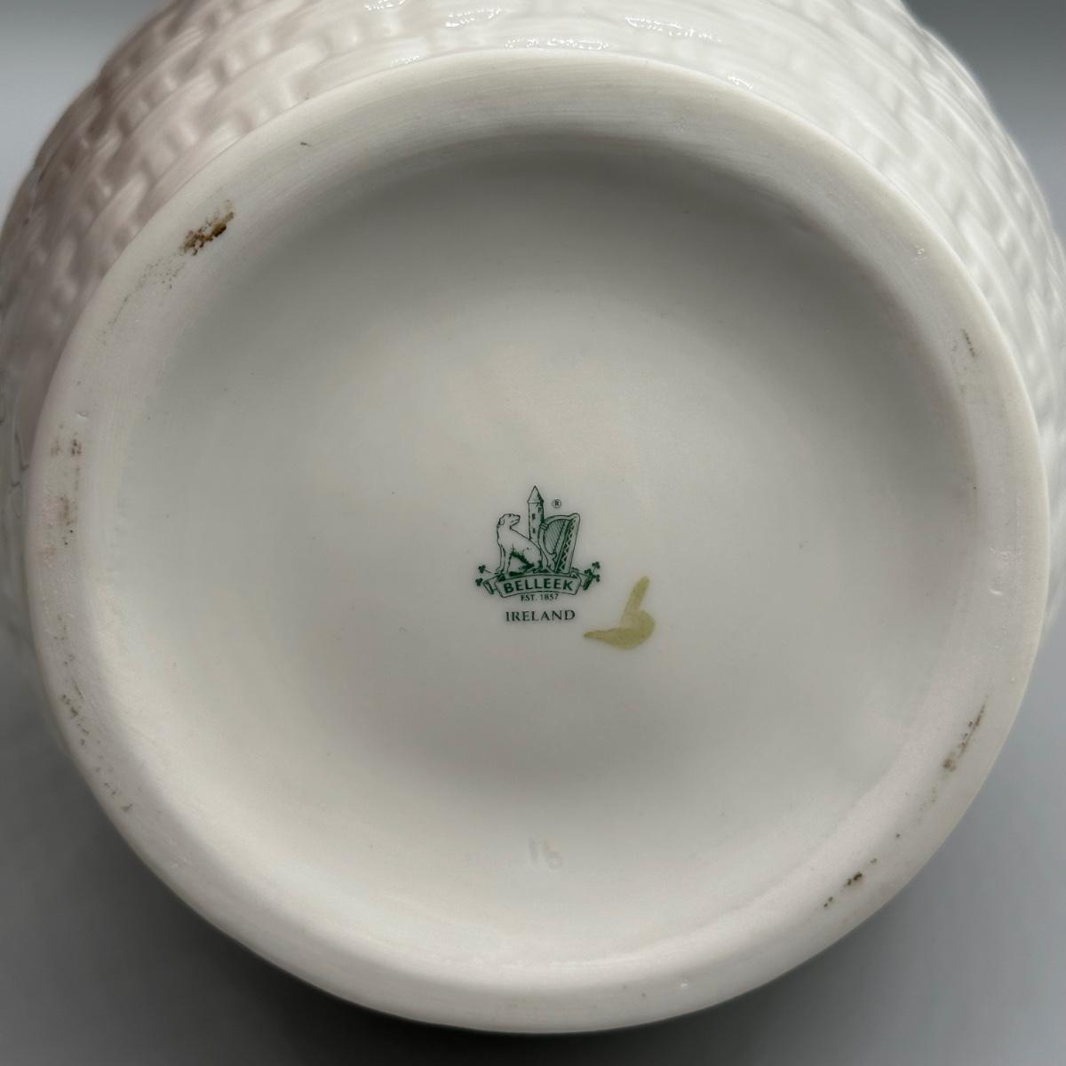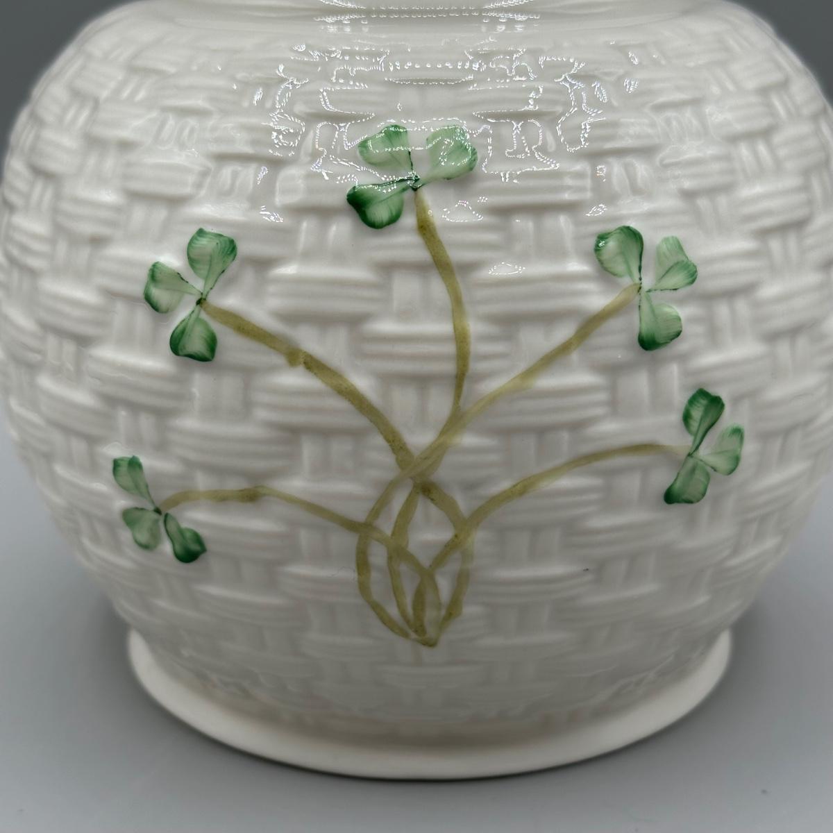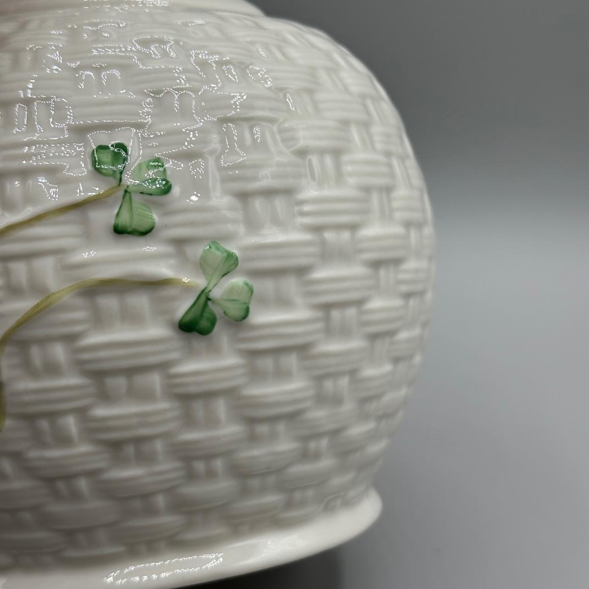 LOT 59: 7” Belleek Porcelain Shamrock Basketweave Vase