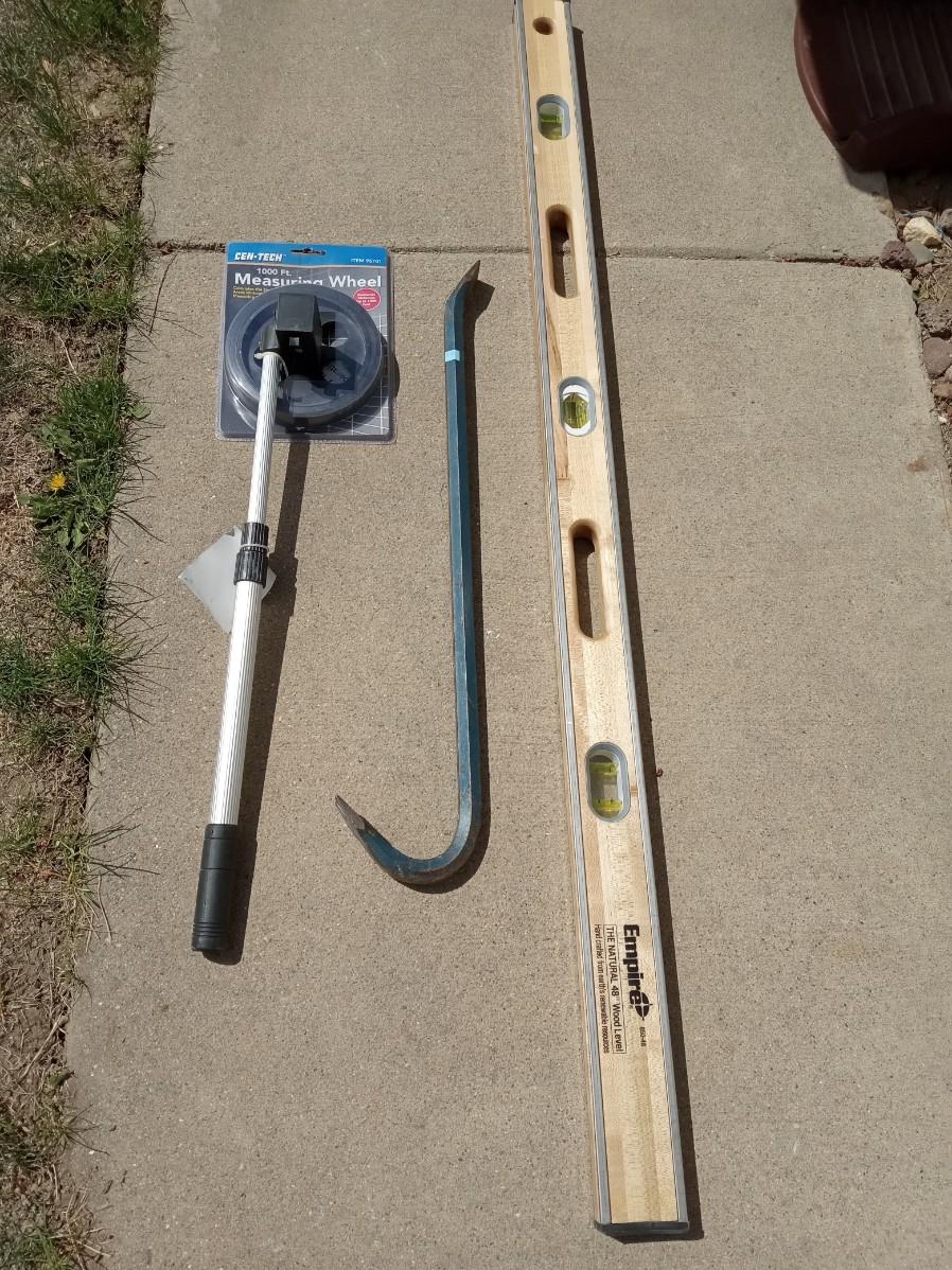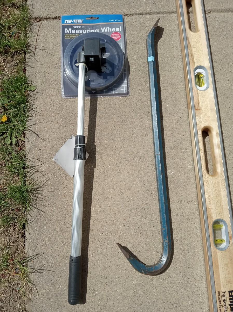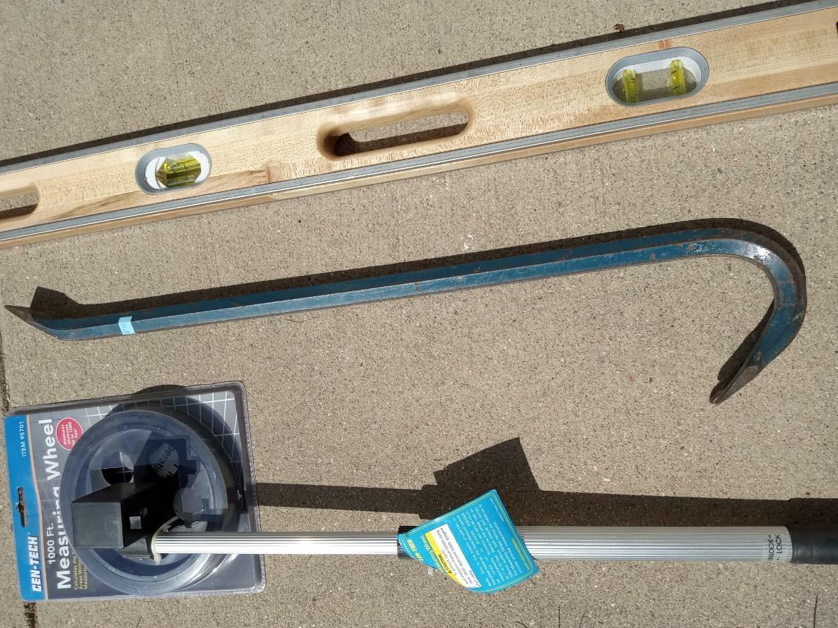 LOT 59 EMPIRE 48" WOOD LEVEL, PRYBAR AND MEASURING WHEEL