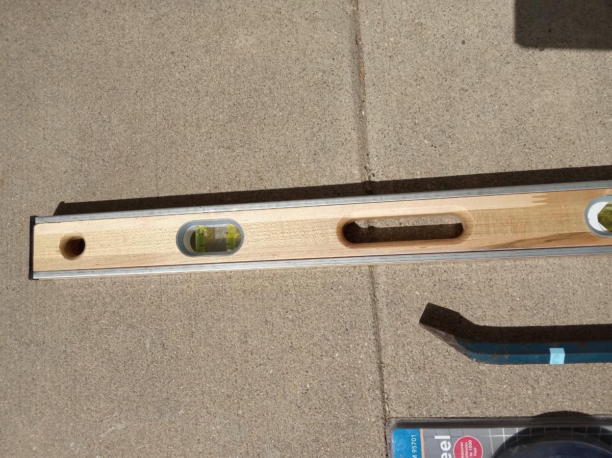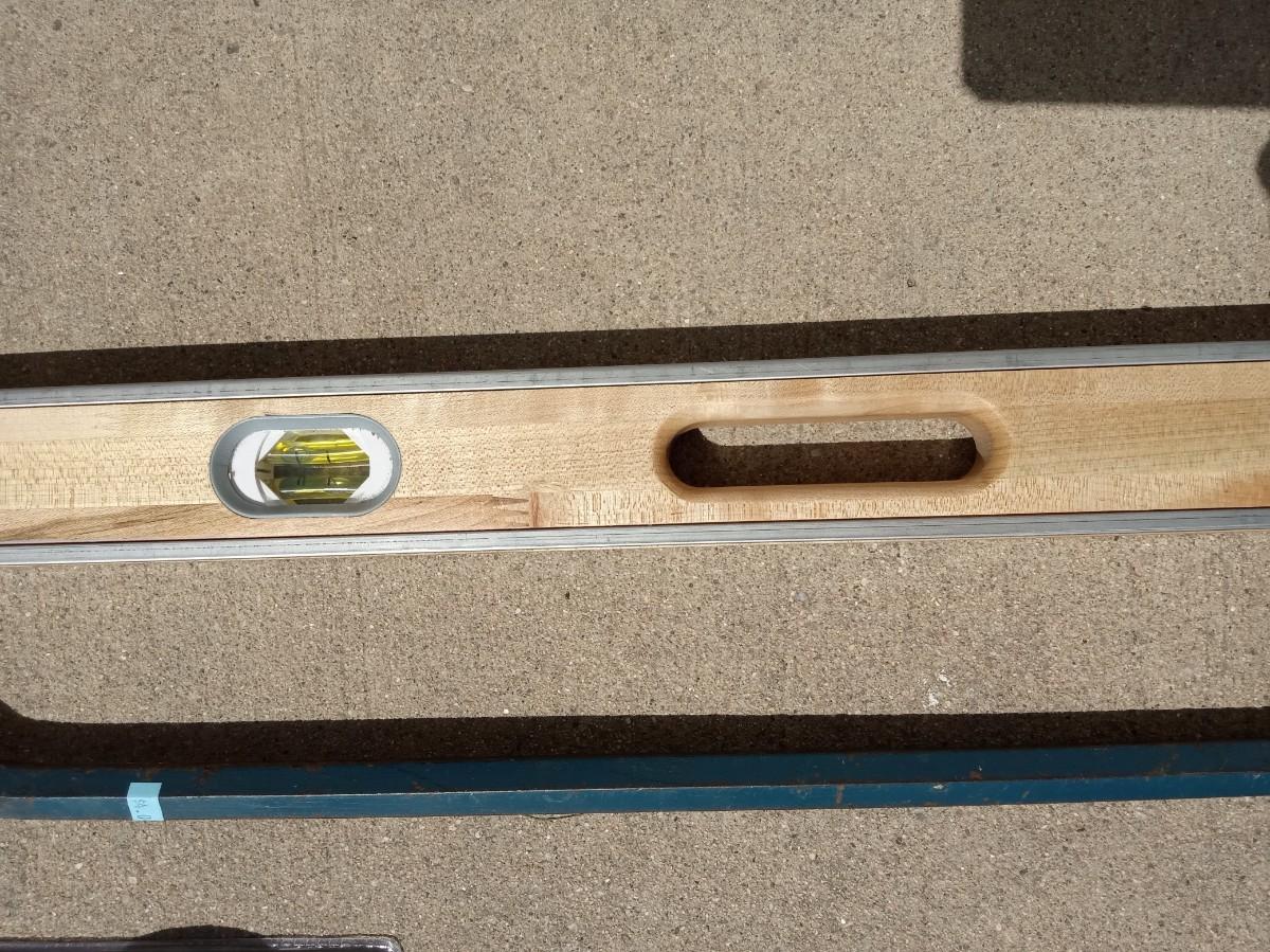 LOT 59  EMPIRE 48" WOOD LEVEL, PRYBAR AND MEASURING WHEEL