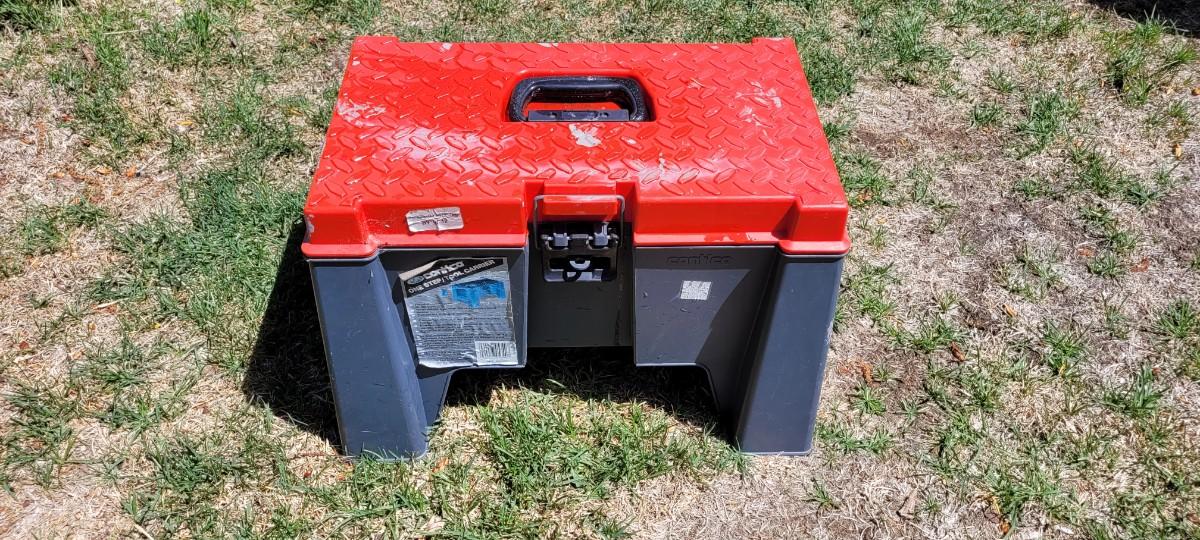 This useful tool doubles as a tool carrier when not being used as a safe step.