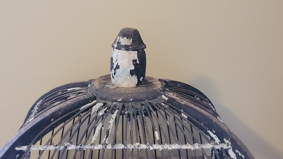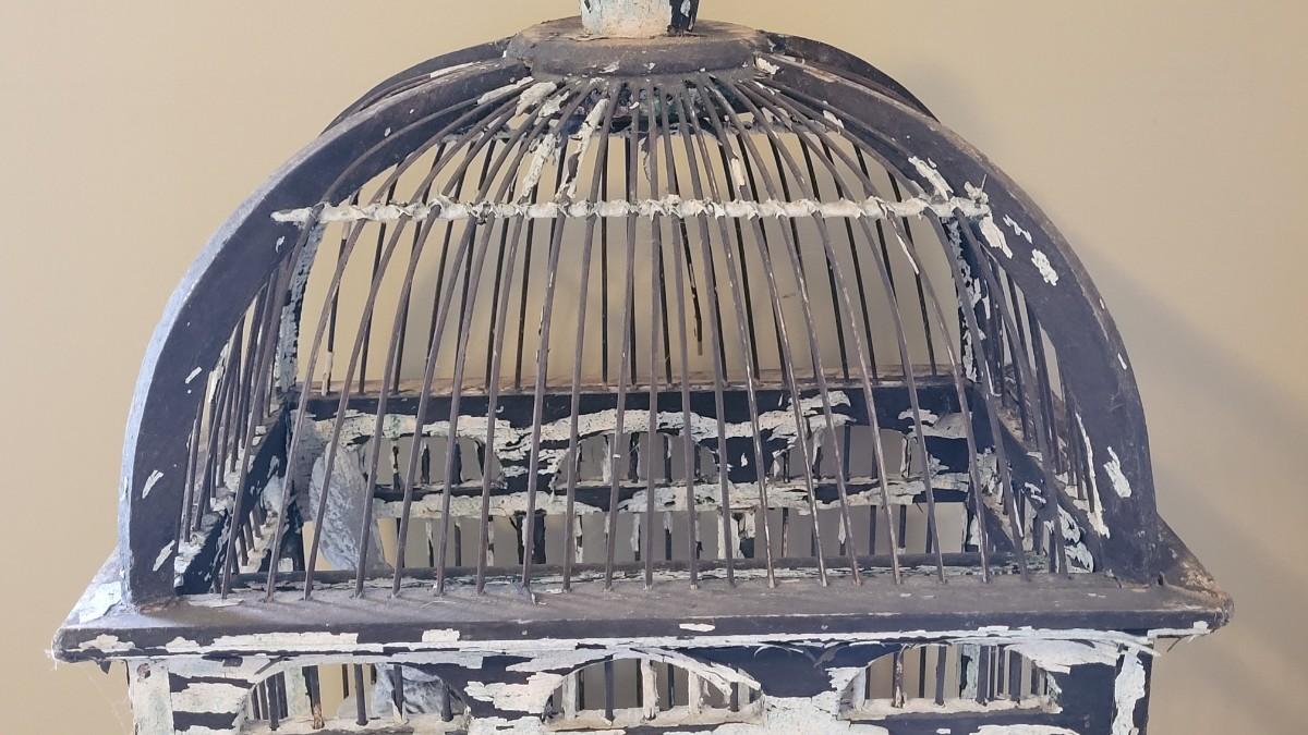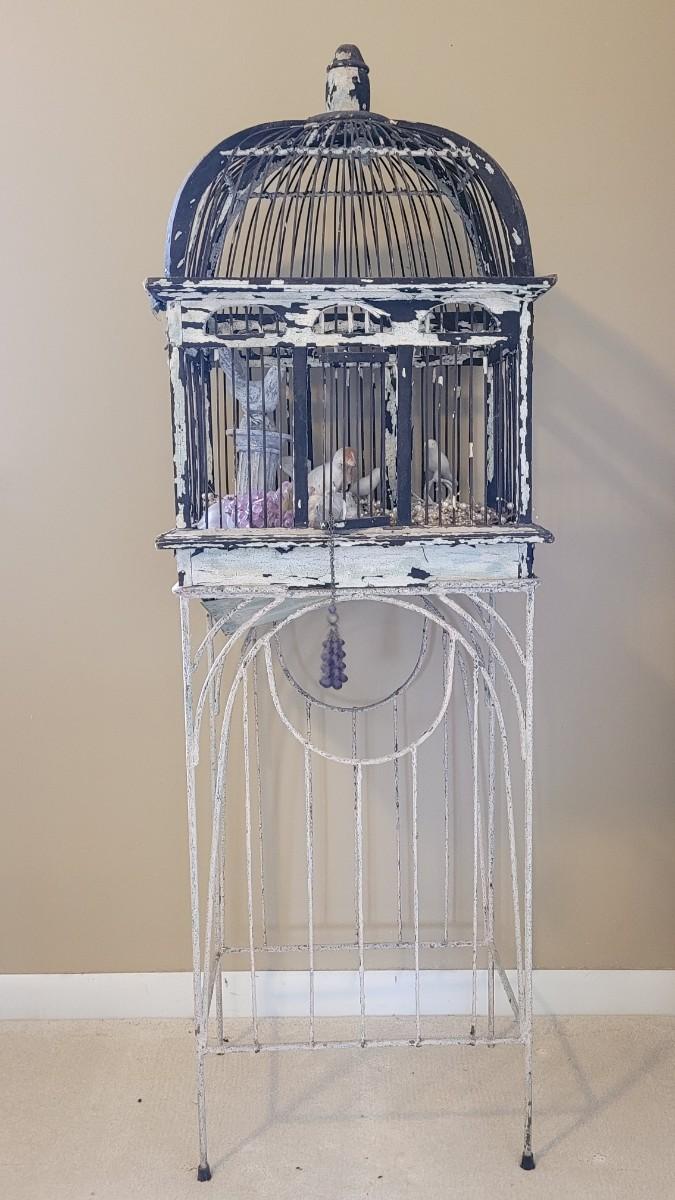 Lot 59: Antique Birdcage on a White Metal Stand