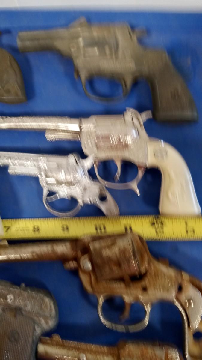 THIS IS A LOT OF MOSTLEY BROKEN GUNS BUT THEY DISPLAY OK THE INDIVIDUAL GUNS WORK BUT ONE HAS RUST AND OTHER MISSING GRIPS
