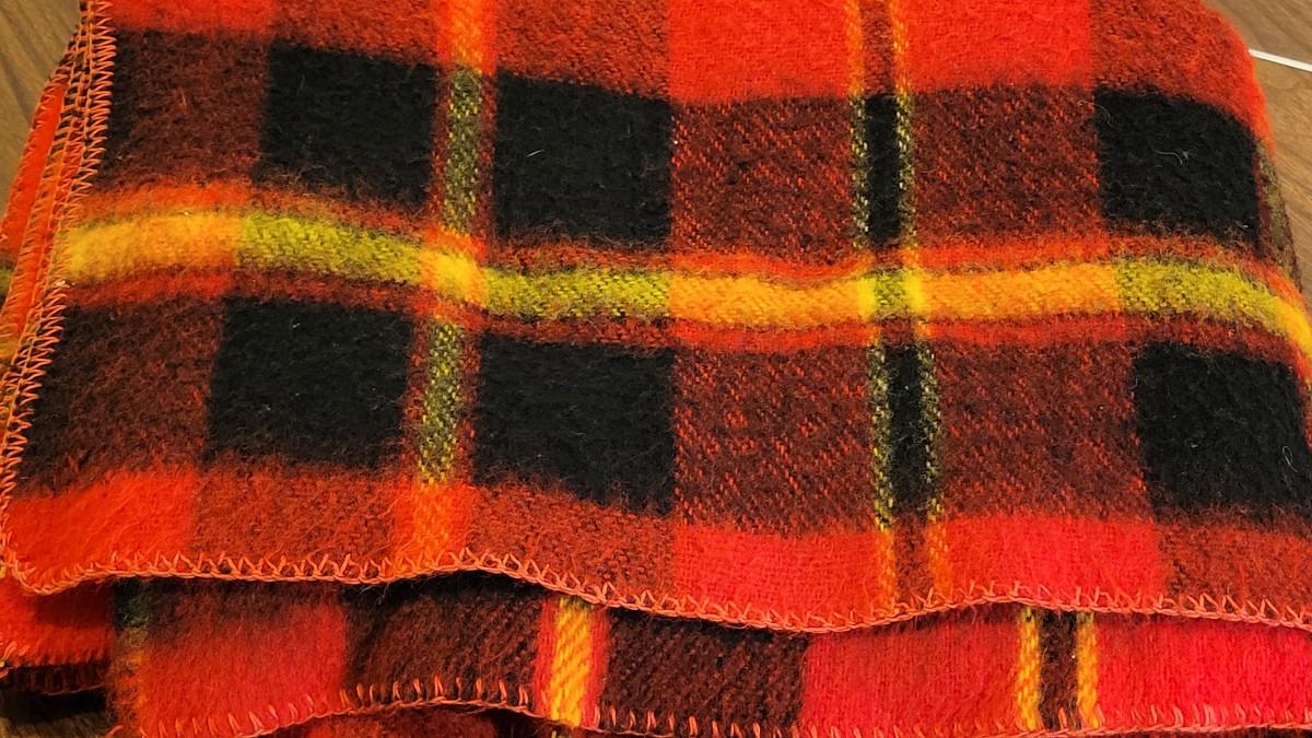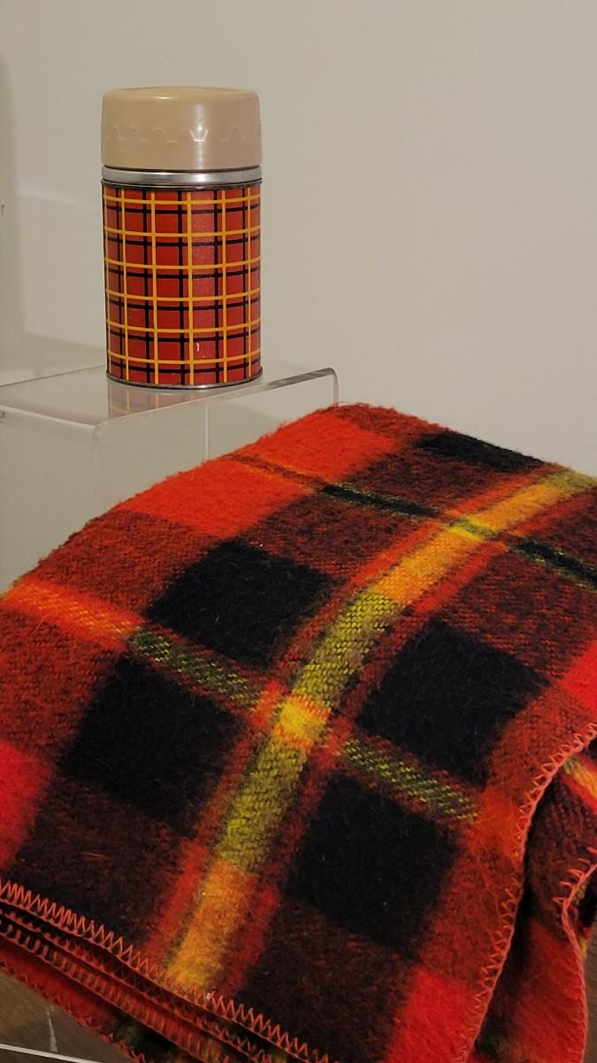 Lot 59: Vintage Red, Black & Yellow Plaid Blanket & Thermos