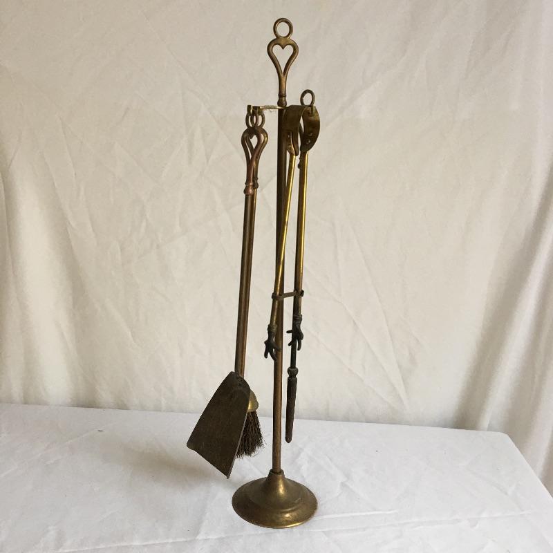 This Brass fireplace tool set includes the stand, brush, shovel, poker and grabbers. Get ready for winter with these handsome fireplace tools.