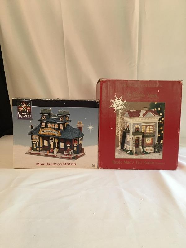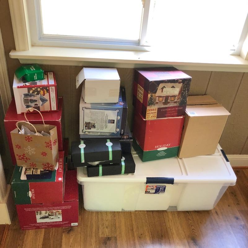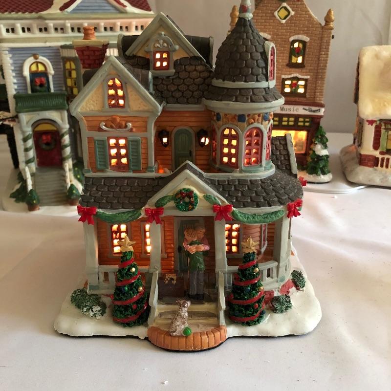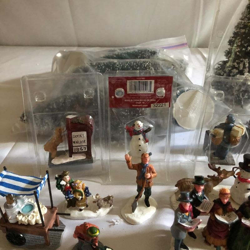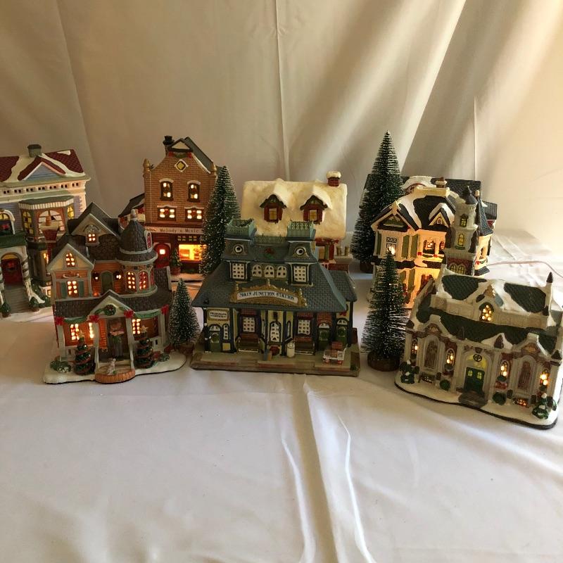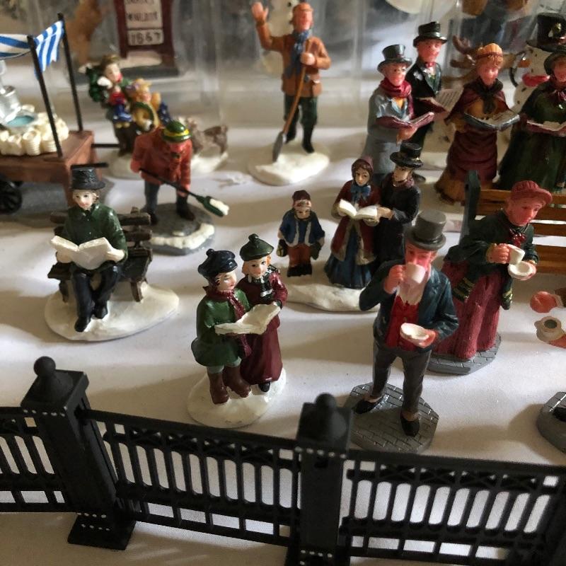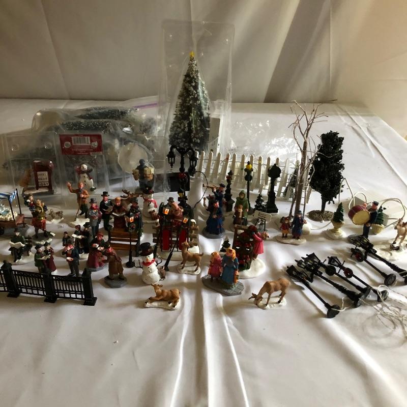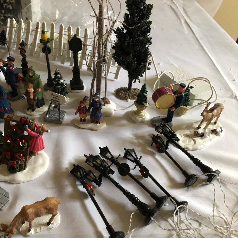 This is a huge lot for all you collector’s out there! Ten houses that light up and come with their original boxes. There are brands such as Holiday Inspirations, Carole Towne and St. Nicholas Square. This great lot includes dozens of figurine village people, animals, light up street lamps and much, much more.