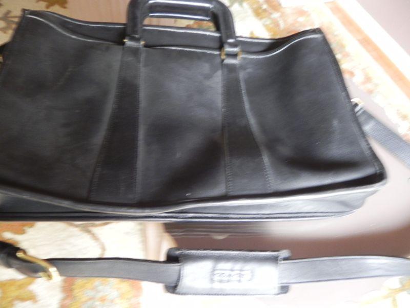 LEATHER SOFTSIDED COACH BRIEFCASE WITH OUTSIDE POCKETS AND 2 COMPARTMENTS INSIDE LIGHT WEAR