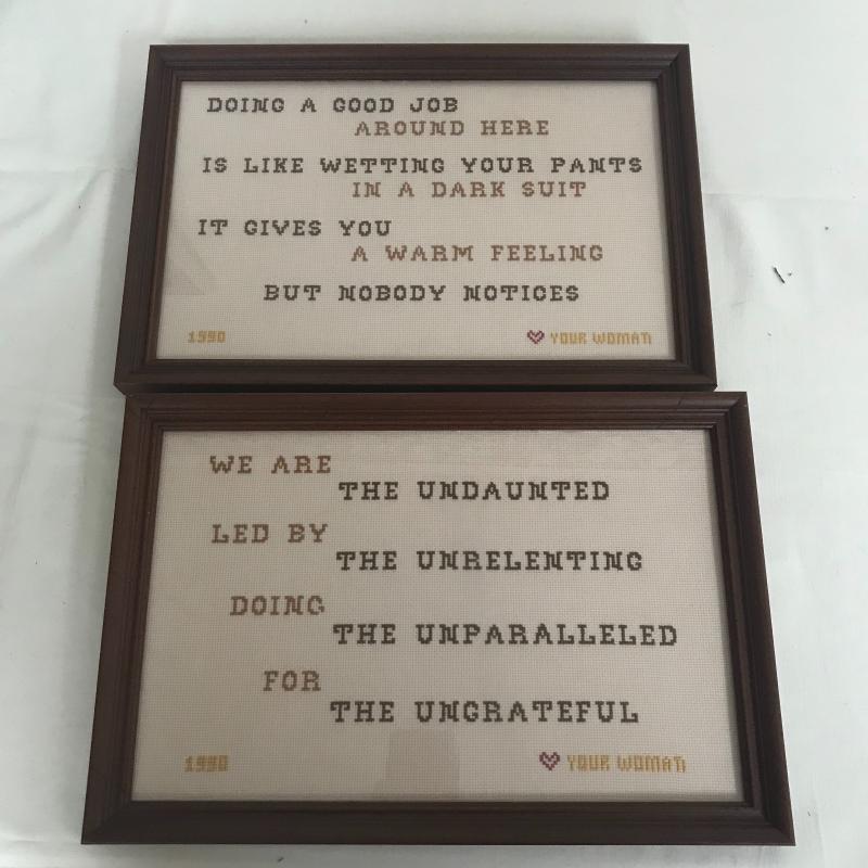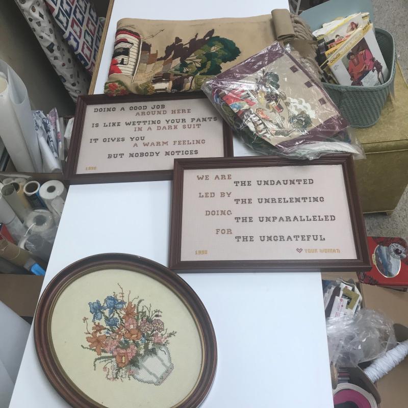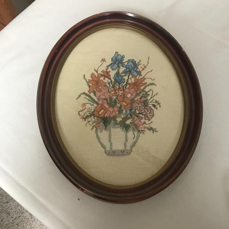 Three framed Cross Stitch projects. And one needlepoint that may not be complete but has the kit with it. Local pick up only.