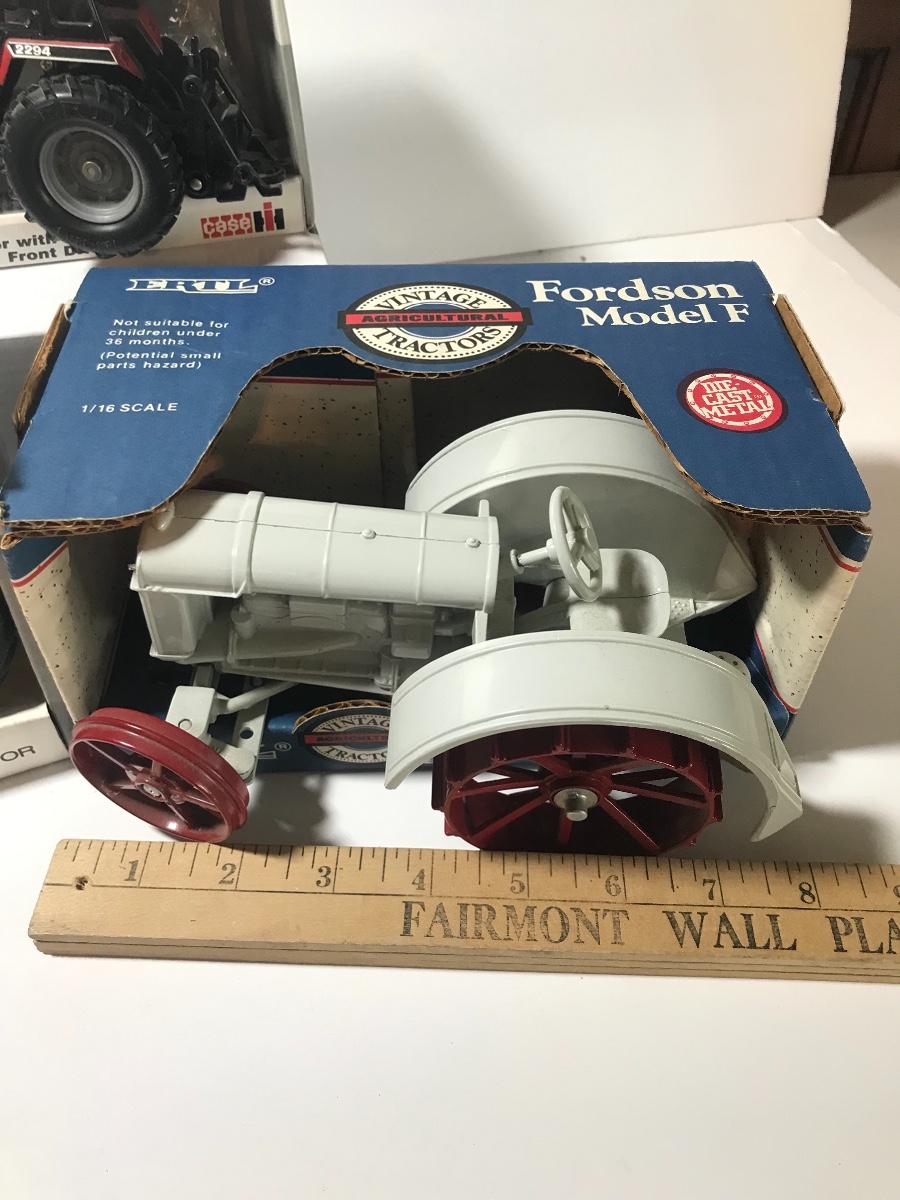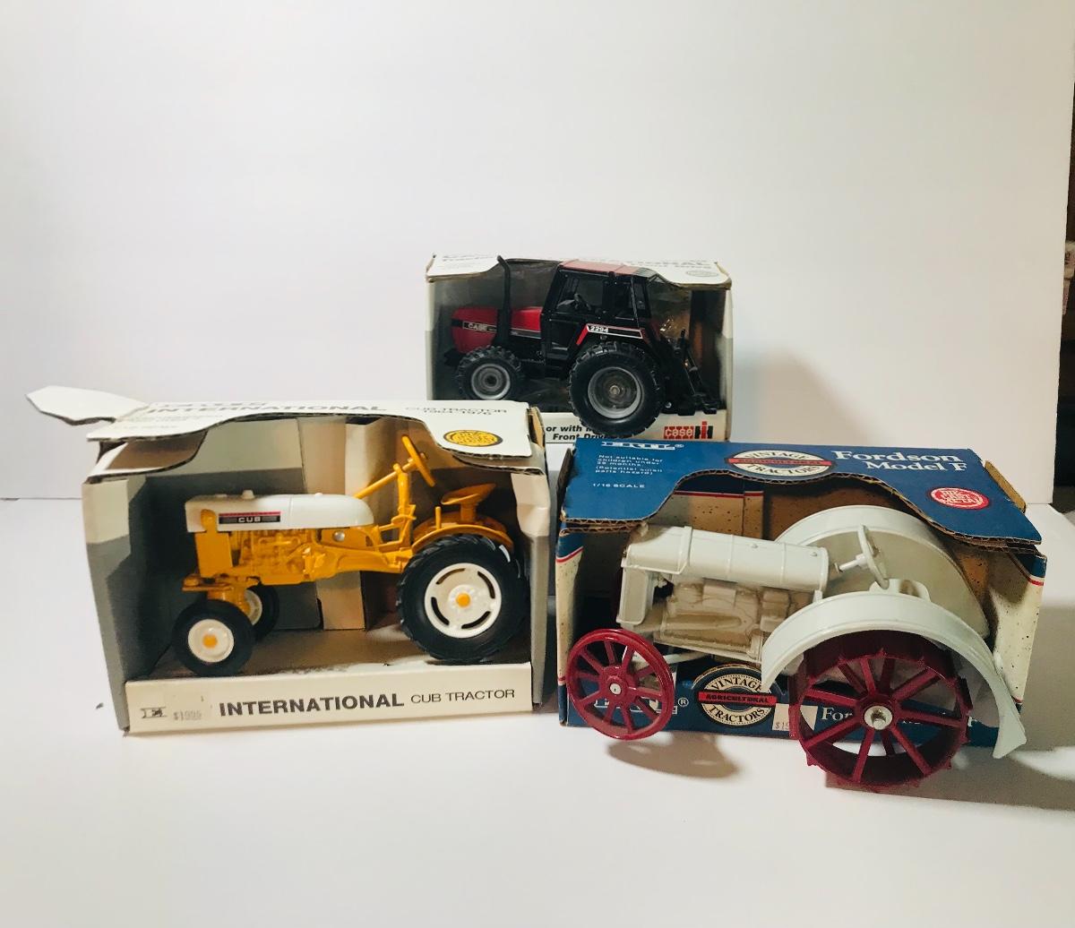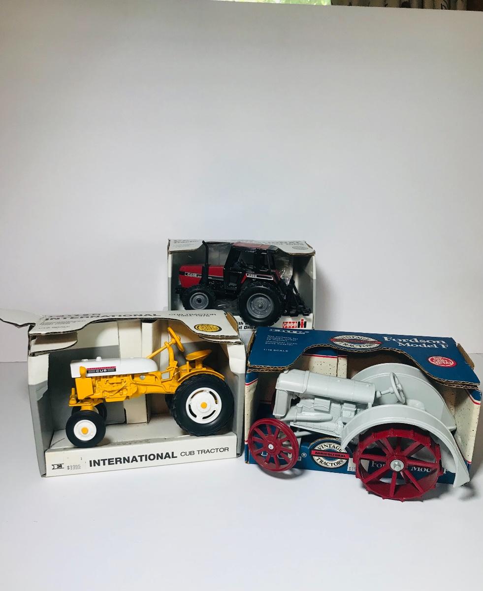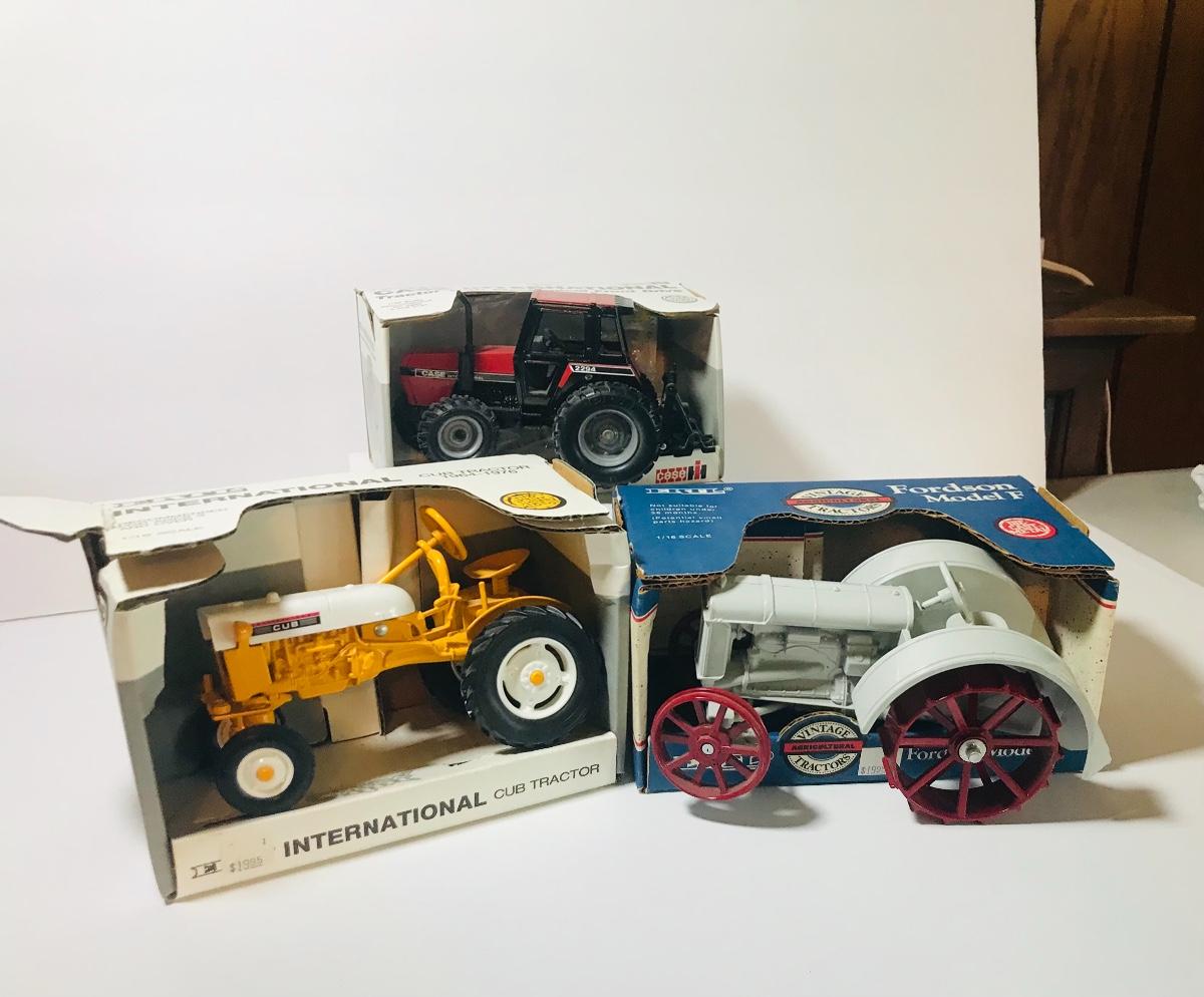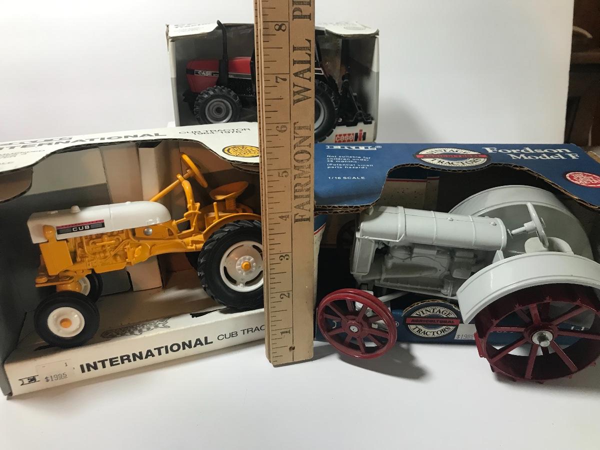 Three die cast farm tractors with original boxes. The pictures show condition, measurements if taken, and what is included in the lot. Due to the large amount that we photograph and the time frame, we are not always able to take measurements. All items unless noted, are pre-owned and have been used. If you purchased furniture, you must bring help. We do not allow one person to carry large furniture out on their own. Bring help, tools and a truck for the safety of our client’s homes, and your personal safety. Company policy. Thank you.