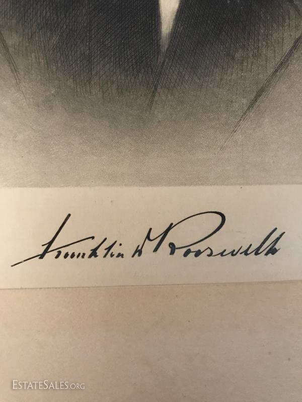 RARE President Franklin D. Roosevelt Steel Engraving 14" x 12" matted. Appears to be an authentic Franklin Roosevelt Signature. Matt has discoloring but print seems to be in good condition. No frame.