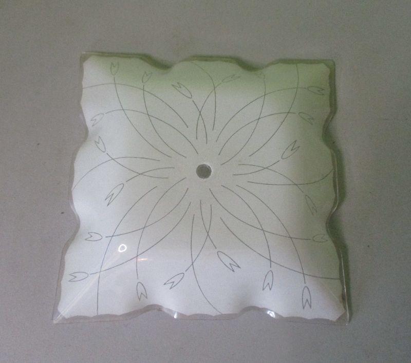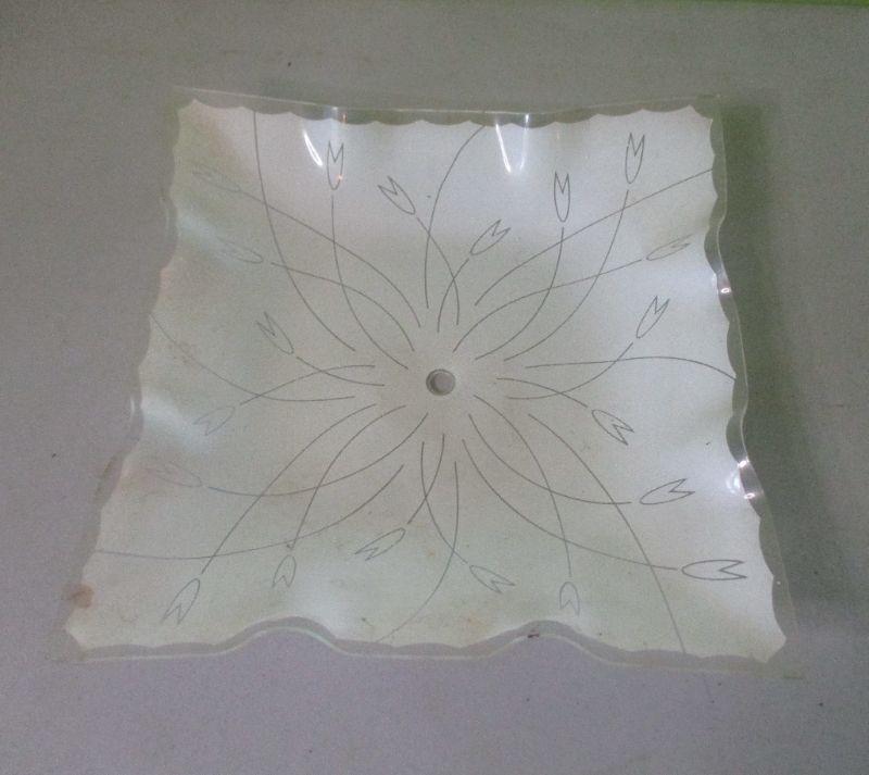 In excellent condition - no chips, cracks, or scratches found. It is just over 11" square.