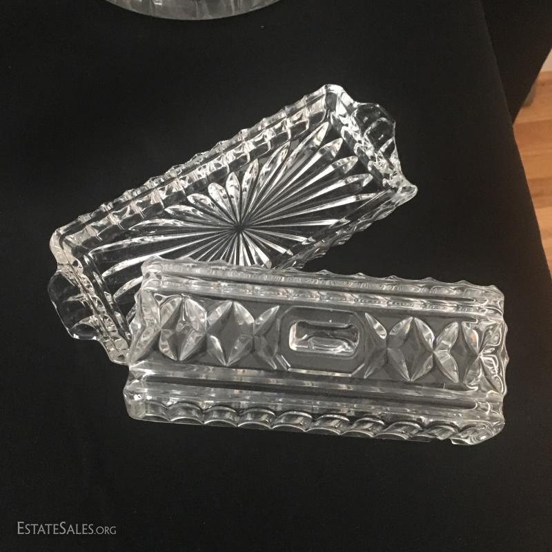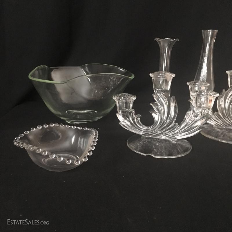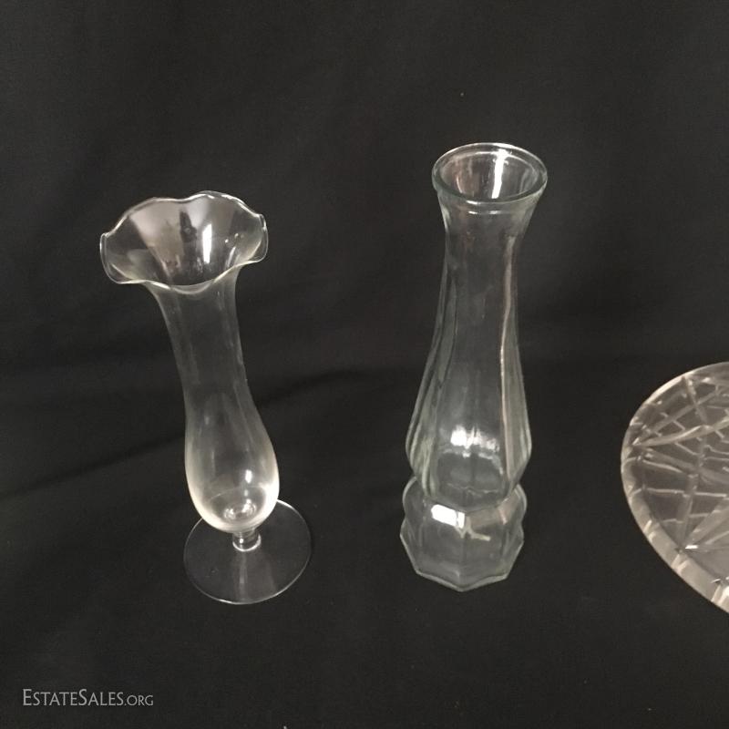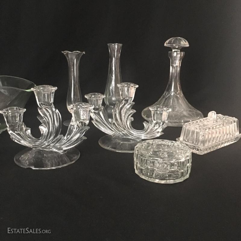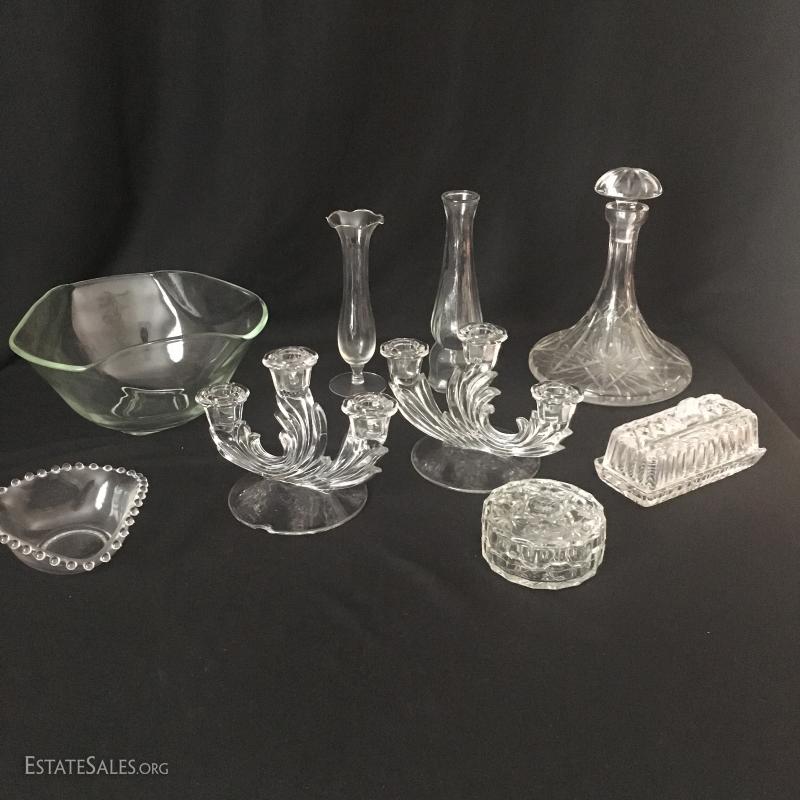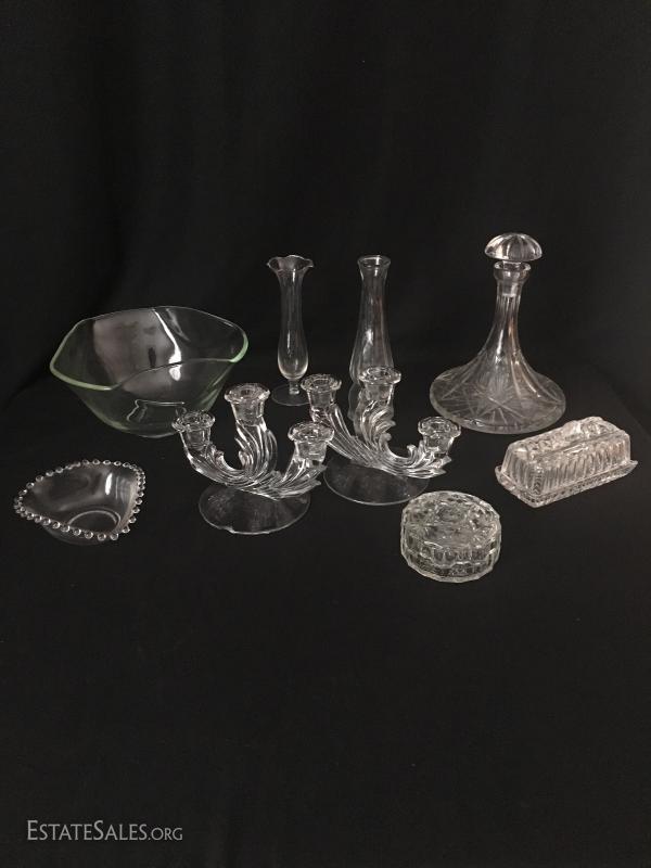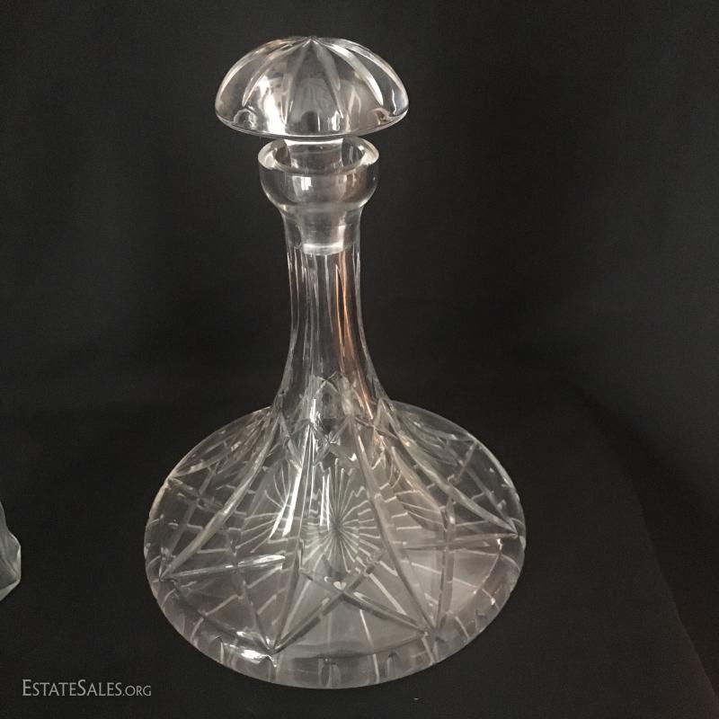 Lot includes modern and vintage pieces that do not match but compliment. Decanter is heavy and measures 9.5" tall and is 8" diameter base. This lot is avaiable for local pick up in Asheville, NC only.