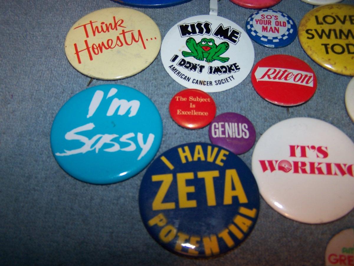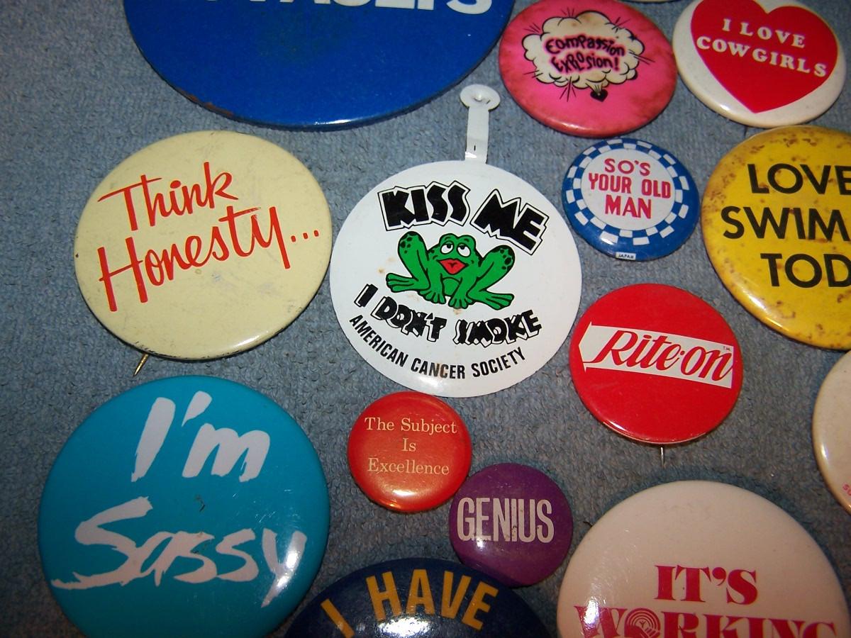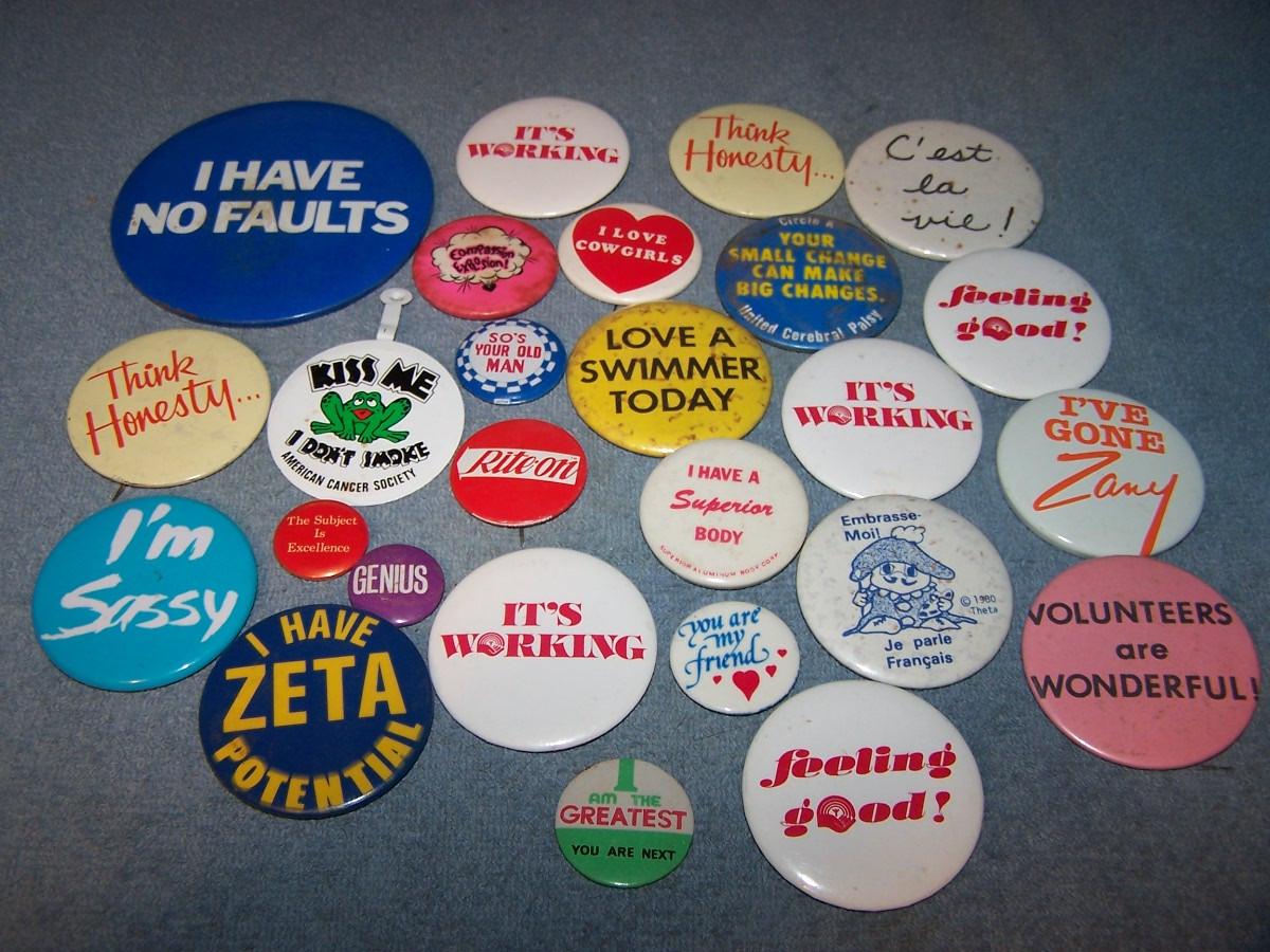 LOT 59 GREAT COLLECTION OF PINS/PINBACKS---SAYINGS
