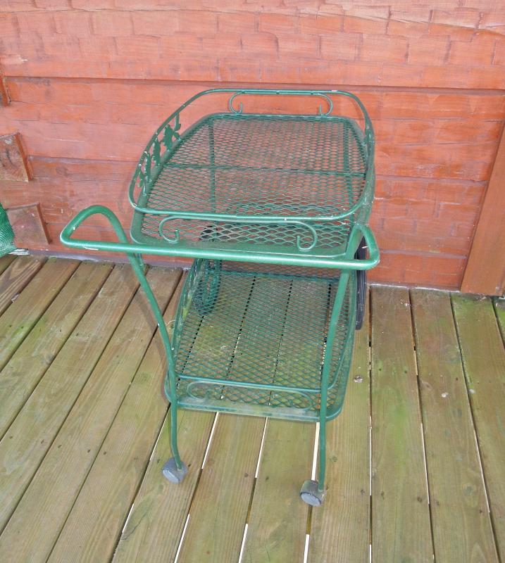 Lot 59: Green Metal Mesh Patio Beverage Cart Removable Tray