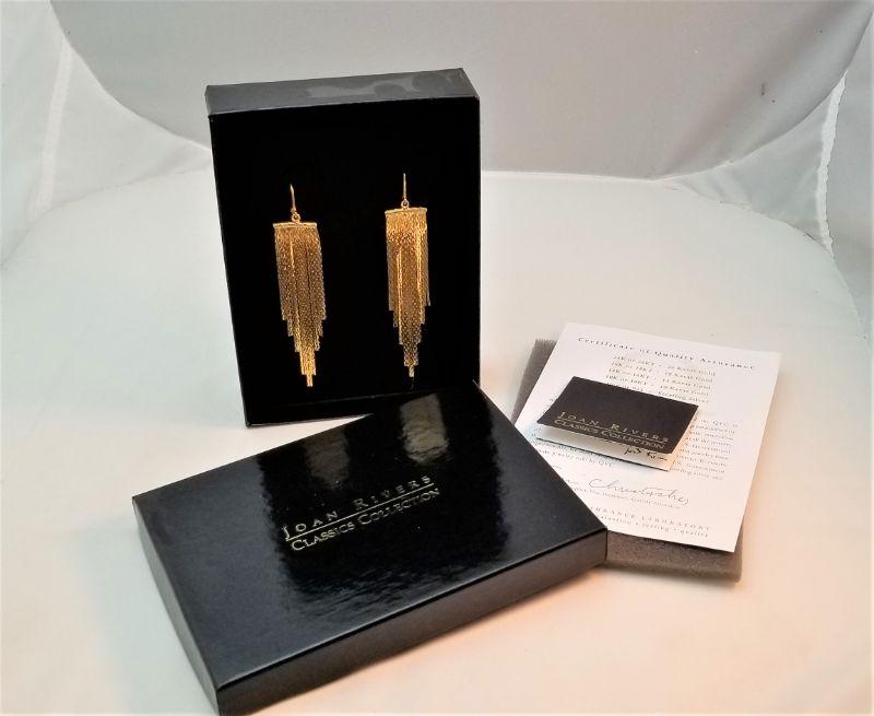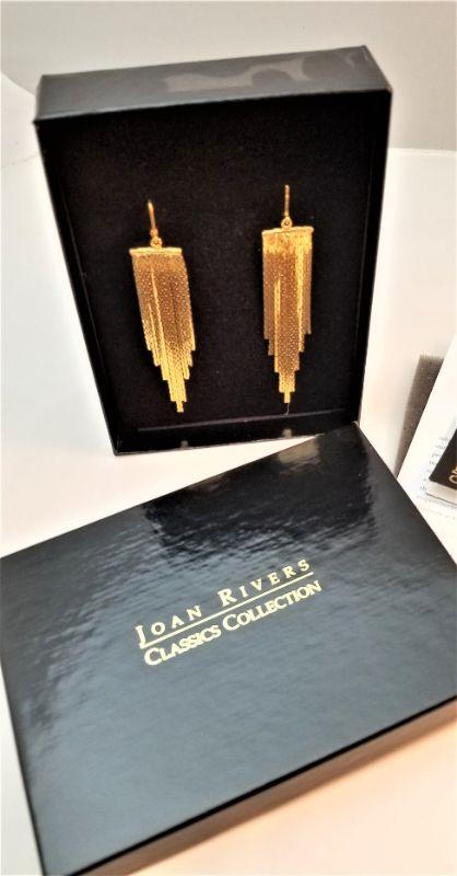 These Loooonnng earrings look like liquid gold, but they are gold-plated beauties from the Joan Rivers Collection. Gently worn, in original box. They measure 3.5 inches long.