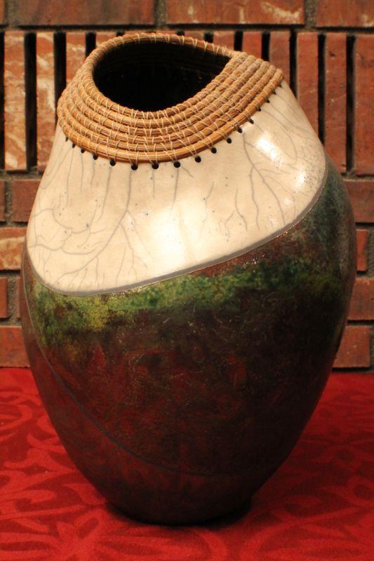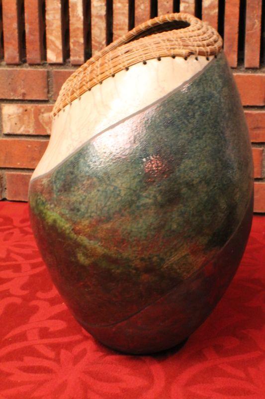 LOT #59: Joyce Shuman Pine Needle and Raku Mixed Medium RAKU Pottery #3