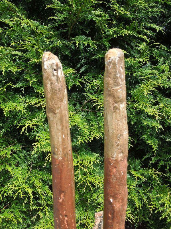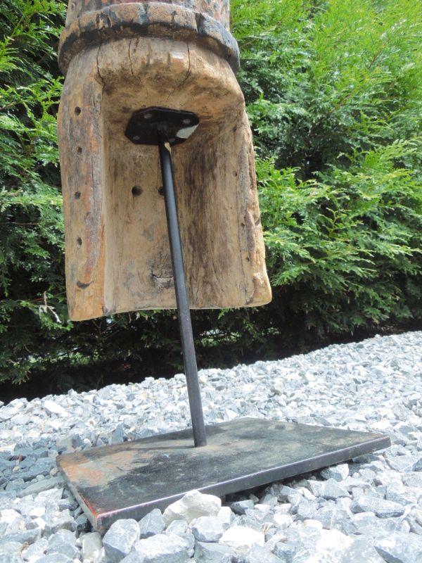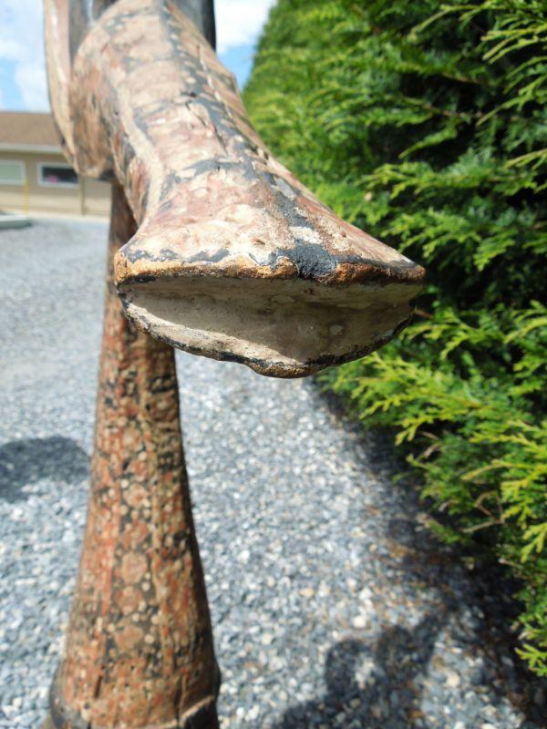Sculpture has wear as expected and consistent with age and use but no major damage aside from wear on end of one horn. From base to tip of horns measures 64" tall. Base is 10" x 10".
