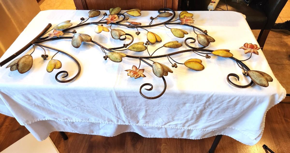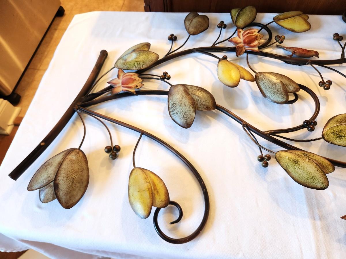 Large Fall-colors contemporary metal wall decoration - foliate/leaf design. 43" across, 27" tall. Good condition.