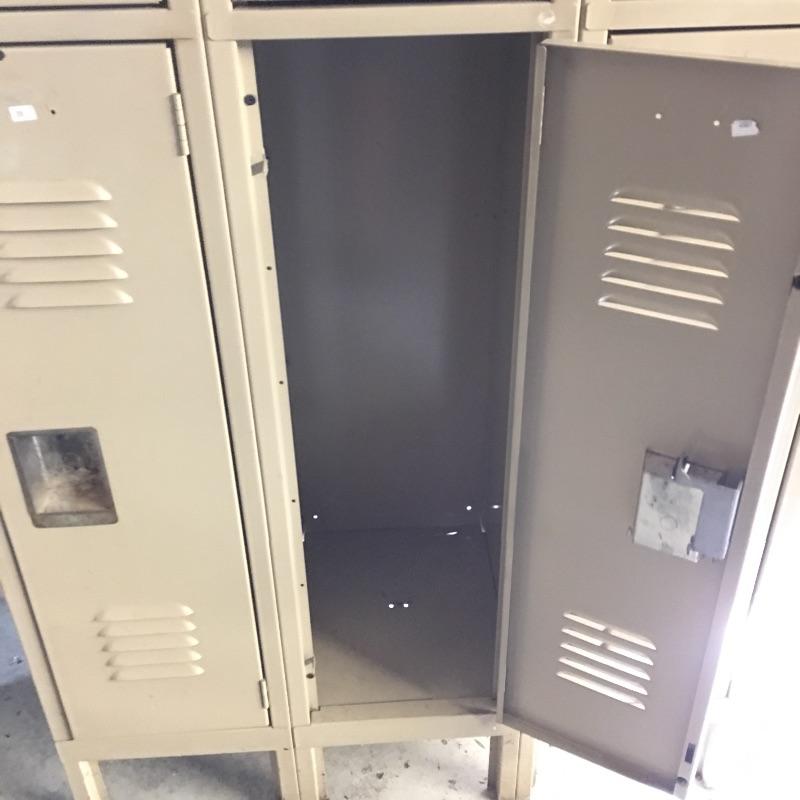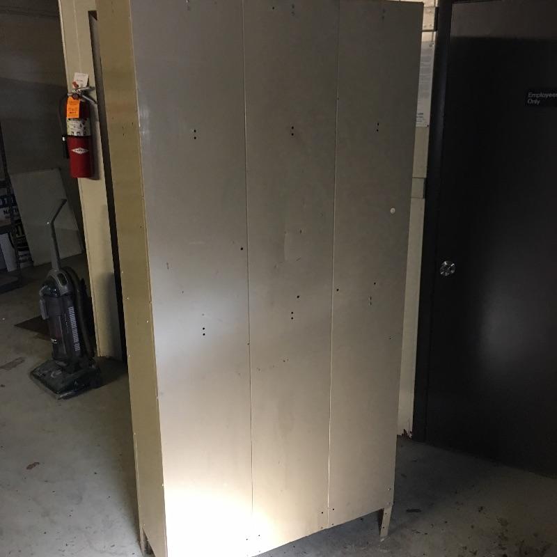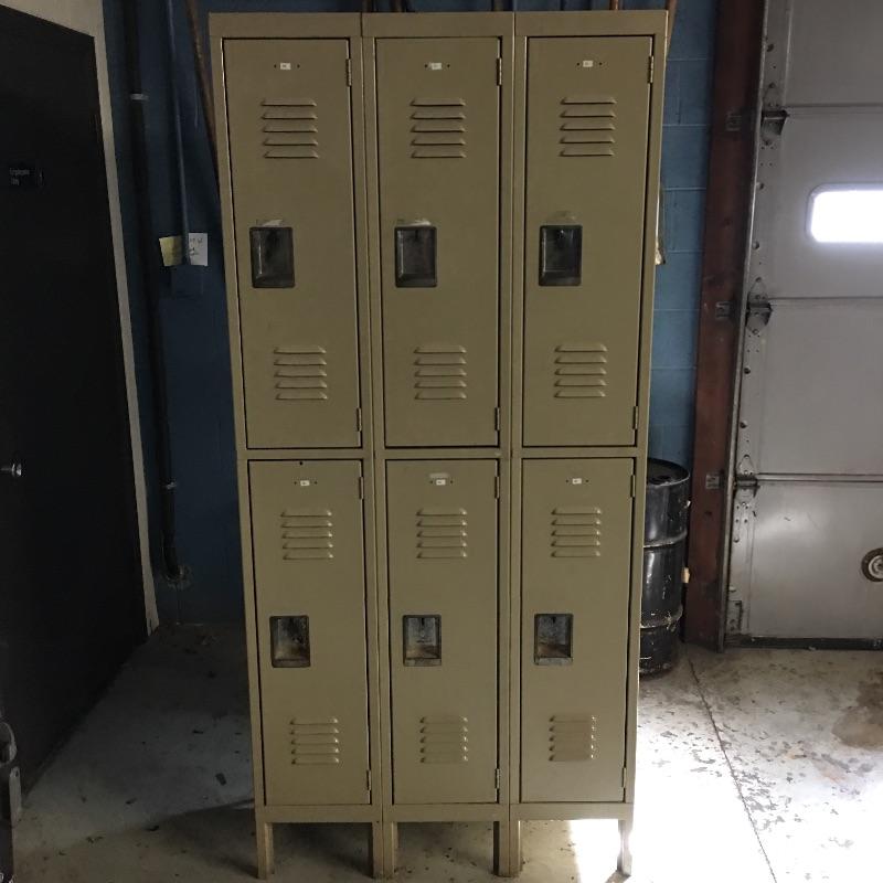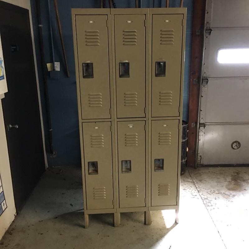Six separate lockers in one piece. Door handles have fingertip lift latch recessed in door. These lockers are great for a myriad of uses including shop, garage, kids room, she shed and more.
