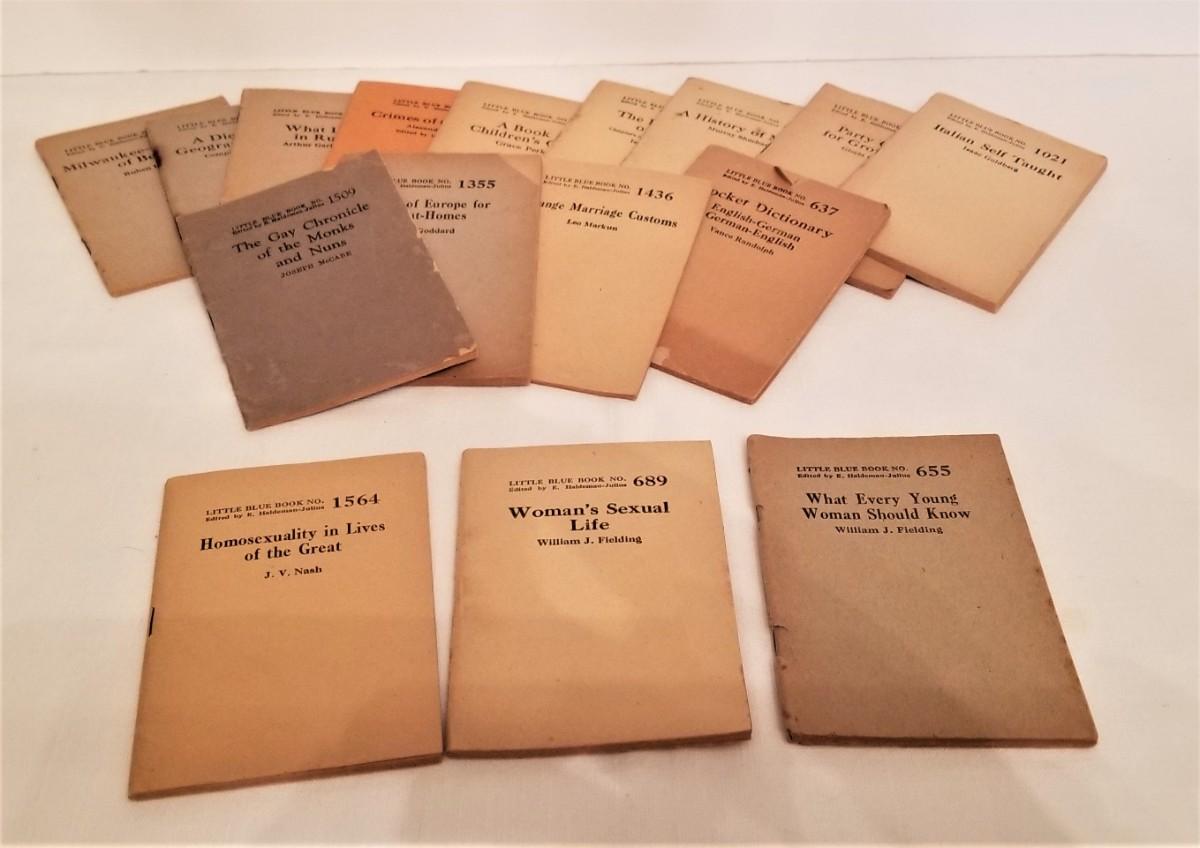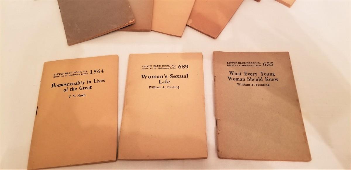 These books were published around 1924 as a series called "Little Books" - written by various authors on all types of subjects - here is a lot of 16 of them (attic find) - the three in the front are of special interest - "What Every Young Woman Should Know", Women's Sexual Life", and "Homosexuality in Lives of the Great." Each measures 3.5" x 5". All in good condition - great Ebay lot here.