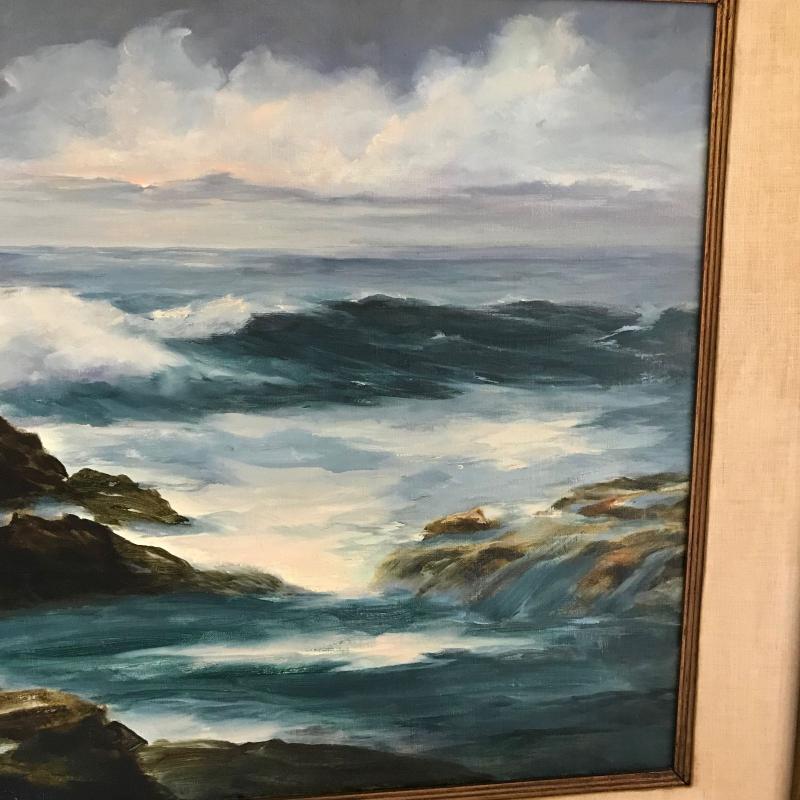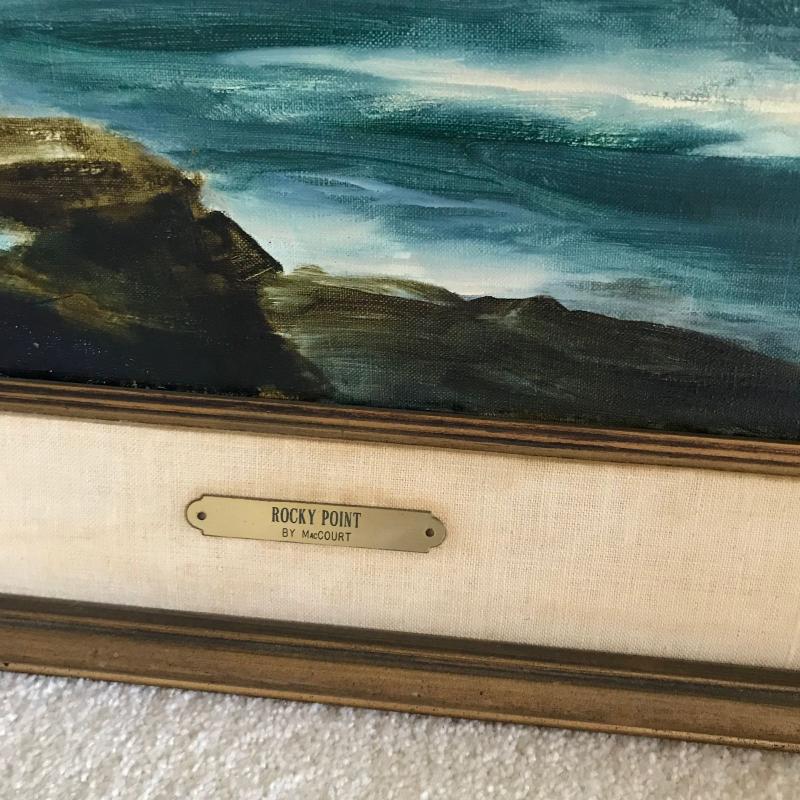 Vintage MacCourt Painting signed by the artist. Waves on rocks at Rocky Point. Framed measures 32” x 26” Shipping available. Please note that shipping art can be expensive. Please get quote from UPS prior to bidding.