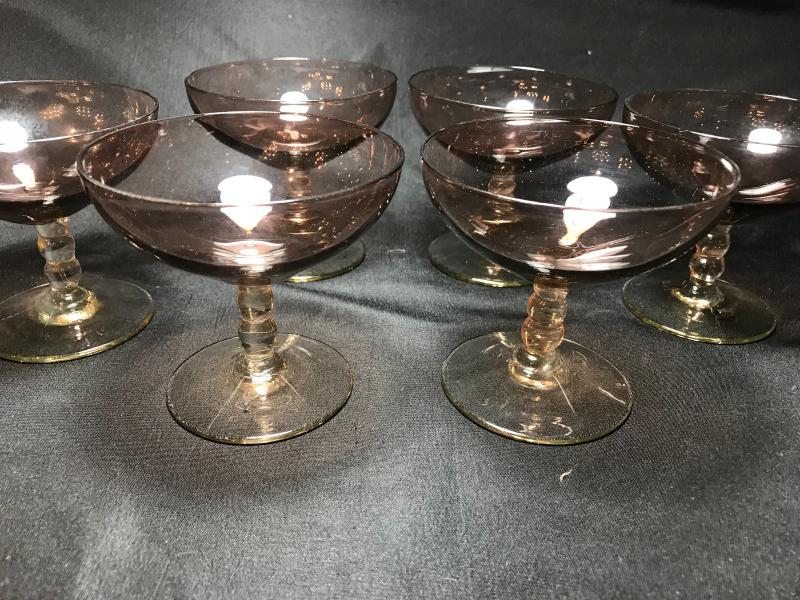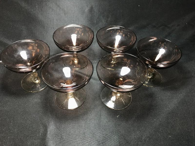 Lot 59- MC Set of Six Burmese Handblown Brown and Clear Champagne Glasses
